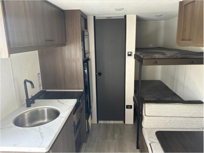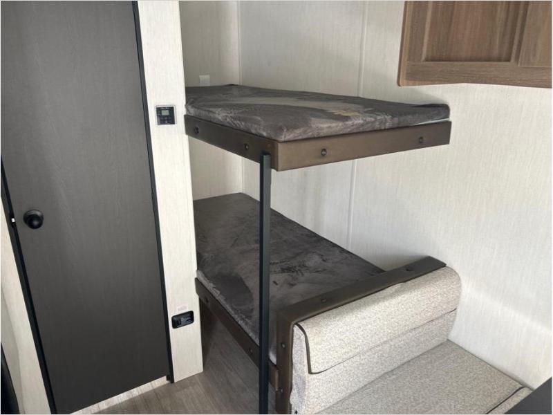 Compact and loaded with comfort and convenience for you to enjoy each and every camping trip! Because this trailer is easily towable, you'll be ready in no time. After a day of hiking, the kids will love sleeping on the bunk beds, and you can sleep on the front camp queen bed. And with enough storage space for your valuables and board games, this trailer makes camping easy!