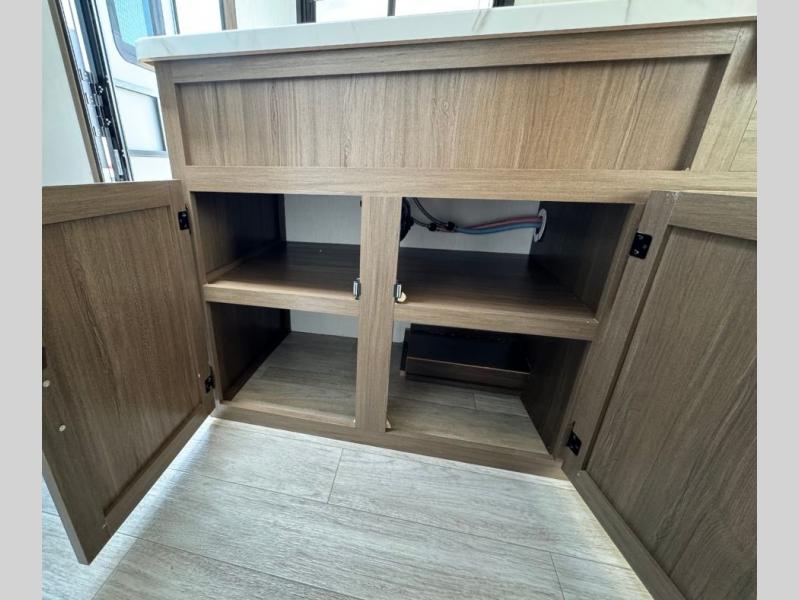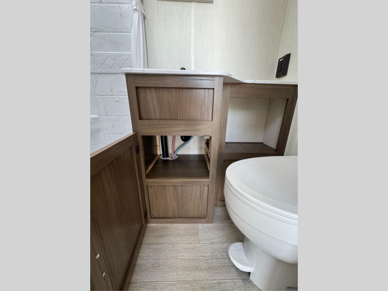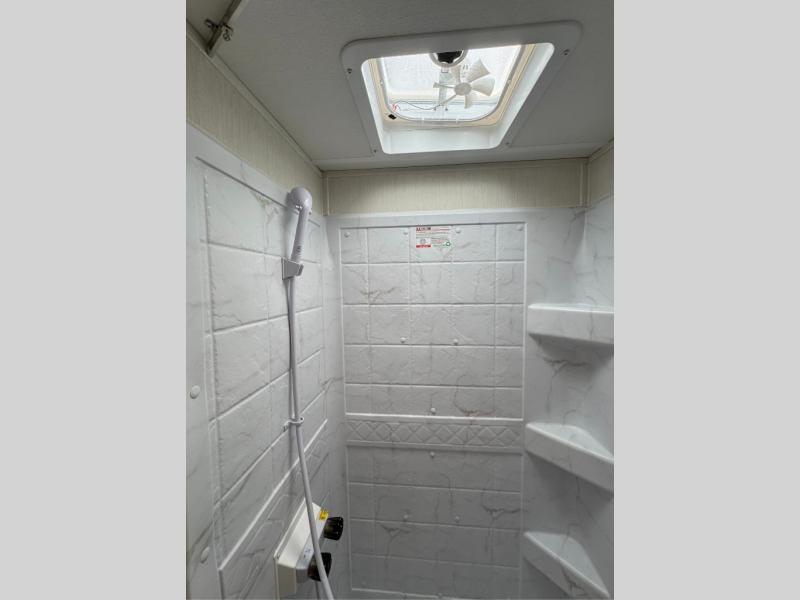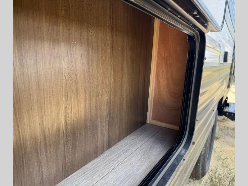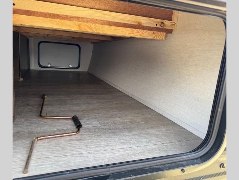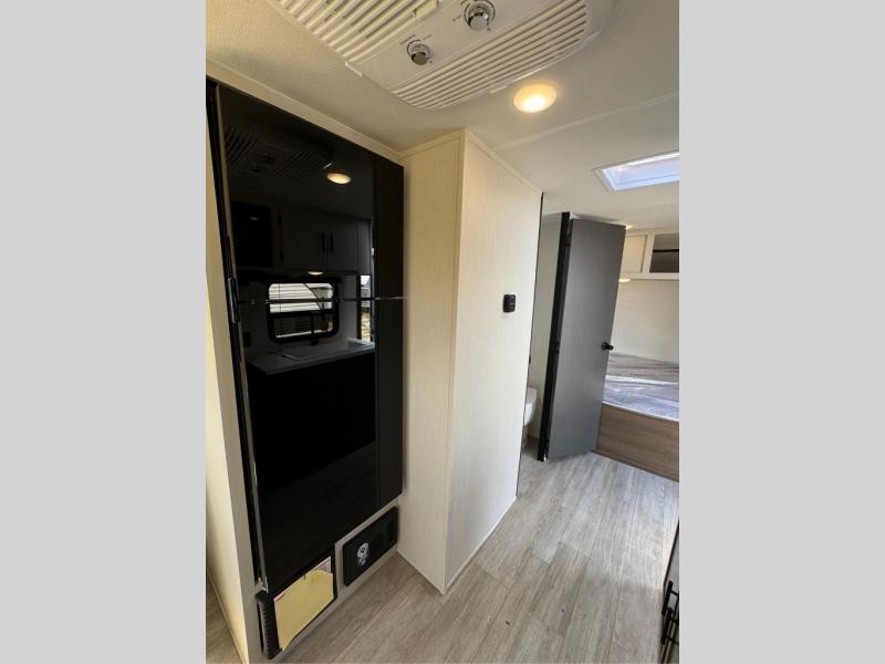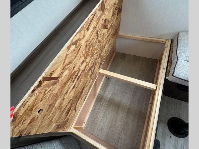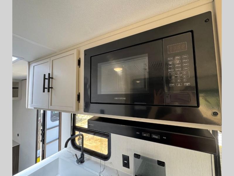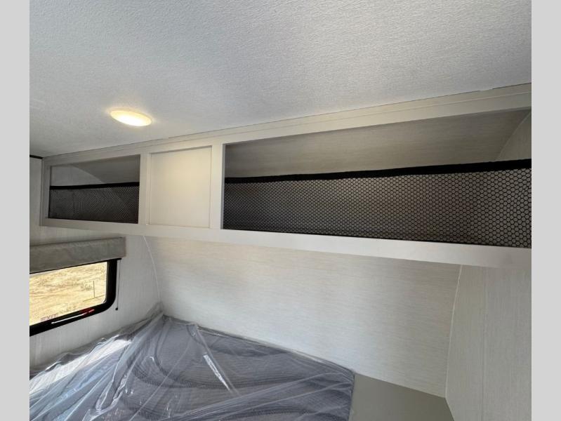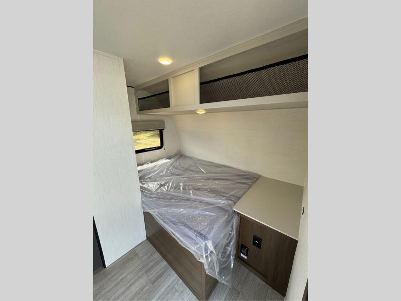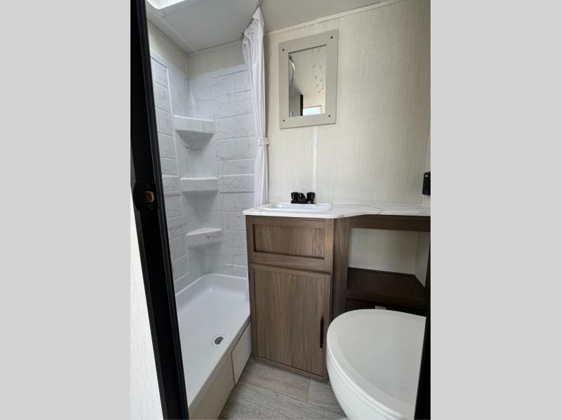 Camping with your friends or family doesn't have to be hard! This easy-to-tow, store and clean up RV allows two to four people to sleep comfortably on the U-shaped dinette along the rear wall with a large window and the front bed with nightstand. The kitchen includes a 10.7 cu. ft. 12V refrigerator, a microwave, plus a two-burner cooktop for preparing meals just like you do at home.