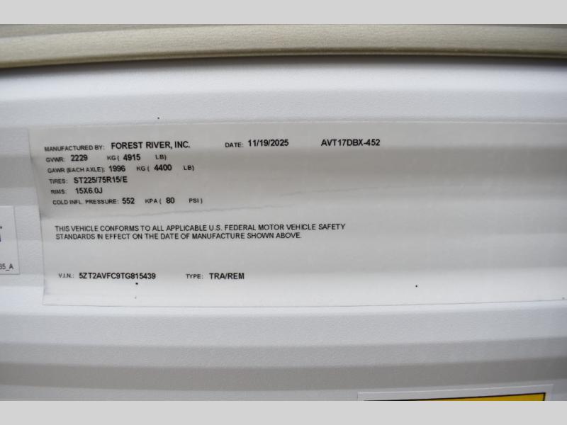 New 2026 Prime Time RV Avenger LT 17DBX Travel Trailer