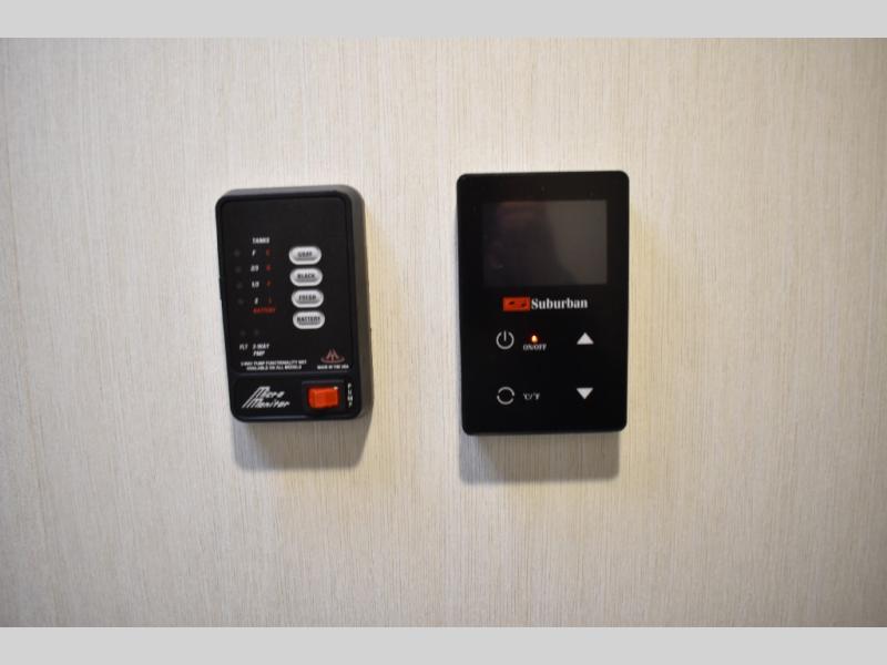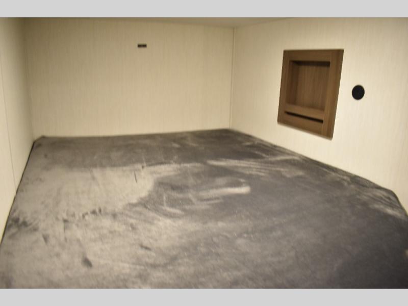 Each Avenger LT travel trailer by Prime Time features automotive grade exterior graphics, gold reflective windows, a smooth metal front, and a fully walkable 7'6"-wide roof, plus rear electric stabilizer jacks, a bumper with spare tire, exterior storage, a power awning, exterior 110V outlets, and a battery disconnect to make campsite setup easier. Inside, you’ll find seamless pressed countertops, blackout shades, a storage dinette, cozy camp queen beds with teddy bear bunk mats, and a bedside table with 110V outlets and USB ports, while the roof-mount 10K thermostat-controlled A/C, direct dump furnace, and tankless on-demand water heater help keep you comfortable in changing weather.