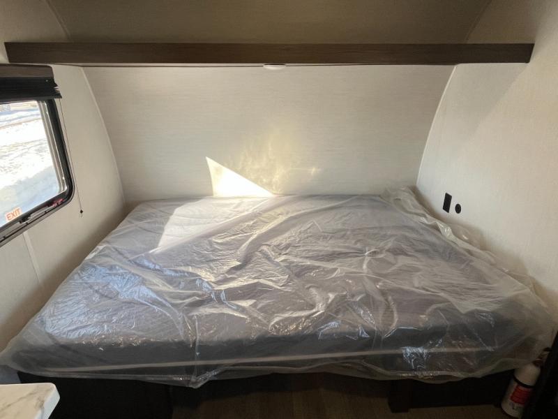 The whole family will love camping in this travel trailer! The kiddos can sleep on the set of bunk beds and you can sleep on the queen bed in the front. They can even invite a friend or two to tag along and sleep on the booth dinette when you aren't using it. Enjoy a meal prepared with the two-burner stove. Everyone can freshen up in the rear corner bathroom with the shower. When packing-up store all of your outdoor gear inside the front exterior storage!