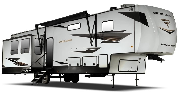 With any Crusader fifth wheel by Prime Time, you will enjoy outstanding quality and premium features! The Dexter E-Z Flex rubberized suspension equalizer will help make towing smoother than ever, and the high gloss gel coated exterior fiberglass is sure to be eye-catching. There are also thick insulated pass-through storage baggage doors outside, along with a 102" wide body, and hassle-free one-touch auto leveling. Inside, you'll find real wood cabinet doors, carpet-less slide rooms, blackout roller shades, and stain resistant, easy clean furniture. The Crusader fifth wheels are built with Eternabond construction, a one-piece PVC roof membrane, radiant foil insulation, plus rack and pinion slide systems.