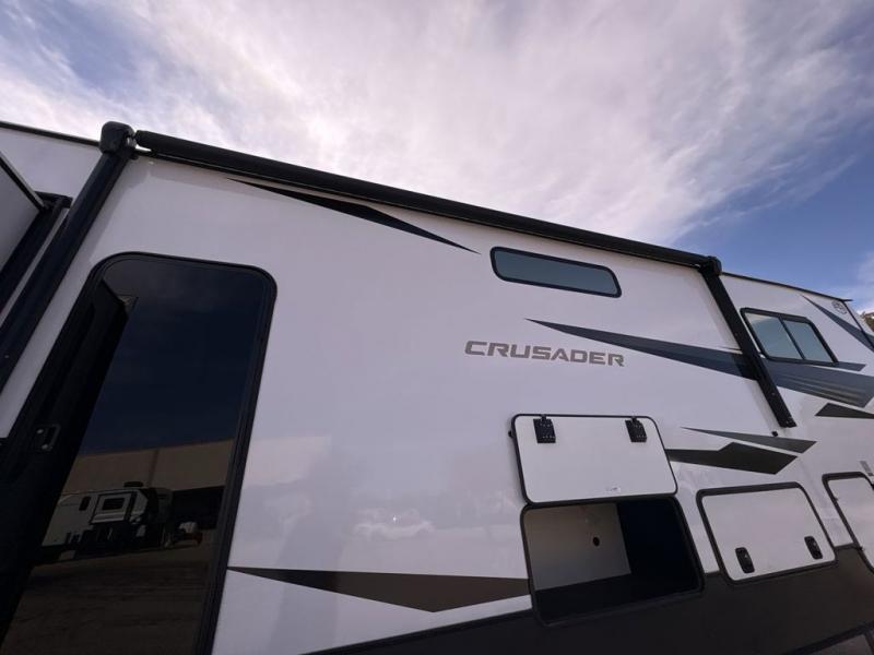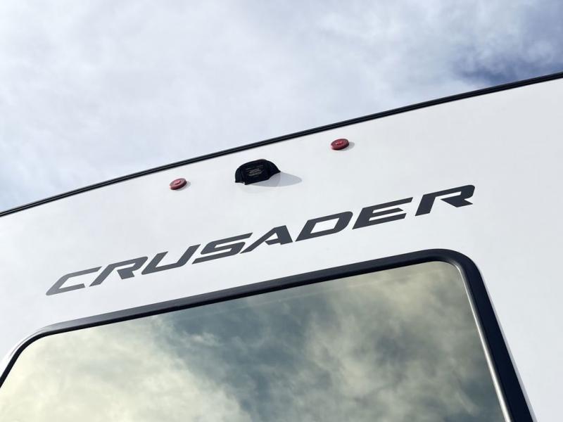 With any Crusader fifth wheel by Prime Time, you will enjoy outstanding quality and premium features! The Dexter E-Z Flex rubberized suspension equalizer will help make towing smoother than ever, and the high gloss gel coated exterior fiberglass is sure to be eye-catching. There are also thick insulated pass-through storage baggage doors outside, along with a 102" wide body, and hassle-free one-touch auto leveling. Inside, you'll find real wood cabinet doors, carpet-less slide rooms, blackout roller shades, and stain resistant, easy clean furniture. The Crusader fifth wheels are built with Eternabond construction, a one-piece PVC roof membrane, radiant foil insulation, plus rack and pinion slide systems.
