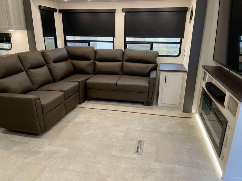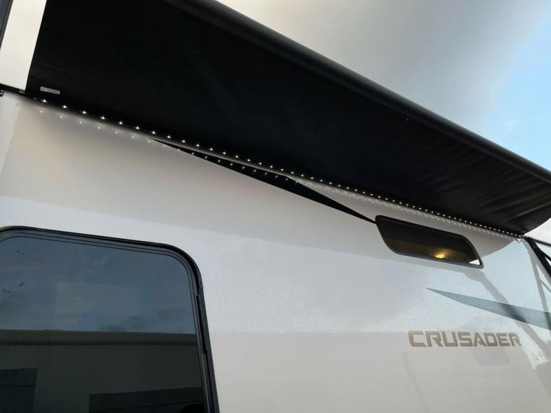 With any Crusader fifth wheel by Prime Time, you will enjoy outstanding quality and premium features! The Dexter E-Z Flex rubberized suspension equalizer will help make towing smoother than ever, and the high gloss gel coated exterior fiberglass is sure to be eye-catching. There are also thick insulated pass-through storage baggage doors outside, along with a 102" wide body, and hassle-free one-touch auto leveling. Inside, you'll find real wood cabinet doors, carpet-less slide rooms, blackout roller shades, and stain resistant, easy clean furniture. The Crusader fifth wheels are built with Eternabond construction, a one-piece PVC roof membrane, radiant foil insulation, plus rack and pinion slide systems.