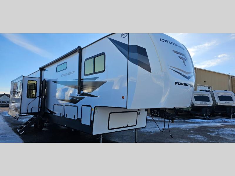With any Crusader fifth wheel by Prime Time, you will enjoy outstanding quality and premium features! The Dexter E-Z Flex rubberized suspension equalizer will help make towing smoother than ever, and the high gloss gel coated exterior fiberglass is sure to be eye-catching. There are also thick insulated pass-through storage baggage doors outside, along with a 102" wide body, and hassle-free one-touch auto leveling. Inside, you'll find real wood cabinet doors, carpet-less slide rooms, blackout roller shades, and stain resistant, easy clean furniture. The Crusader fifth wheels are built with Eternabond construction, a one-piece PVC roof membrane, radiant foil insulation, plus rack and pinion slide systems.