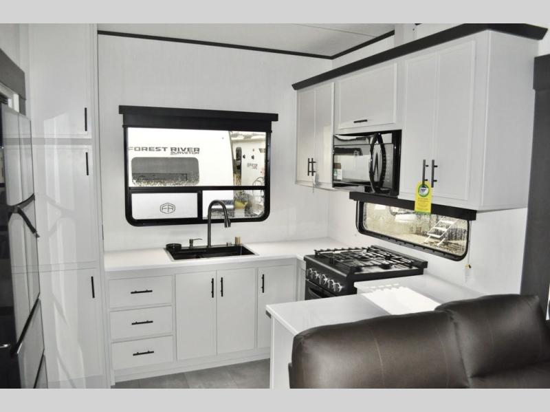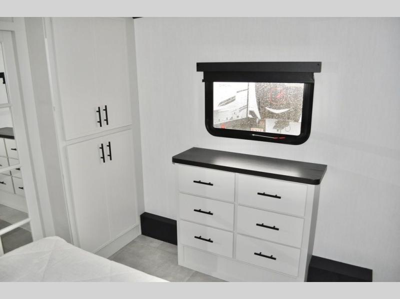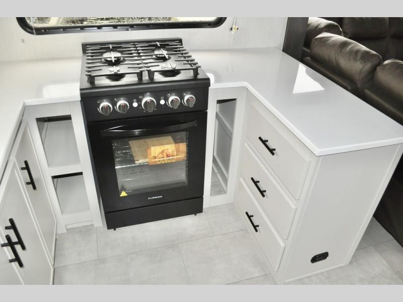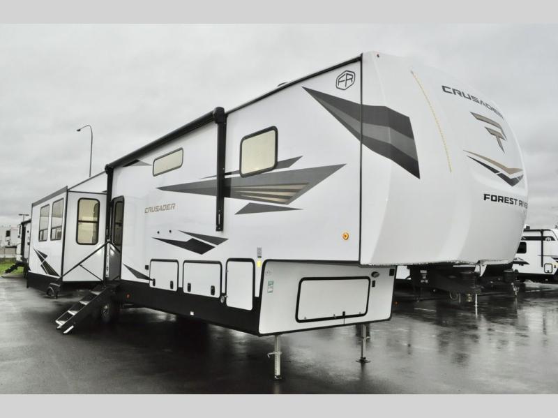 With any Crusader fifth wheel by Prime Time, you will enjoy outstanding quality and premium features! The Dexter E-Z Flex rubberized suspension equalizer will help make towing smoother than ever, and the high gloss gel coated exterior fiberglass is sure to be eye-catching. There are also thick insulated pass-through storage baggage doors outside, along with a 102" wide body, and hassle-free one-touch auto leveling. Inside, you'll find real wood cabinet doors, carpet-less slide rooms, blackout roller shades, and stain resistant, easy clean furniture. The Crusader fifth wheels are built with Eternabond construction, a one-piece PVC roof membrane, radiant foil insulation, plus rack and pinion slide systems.