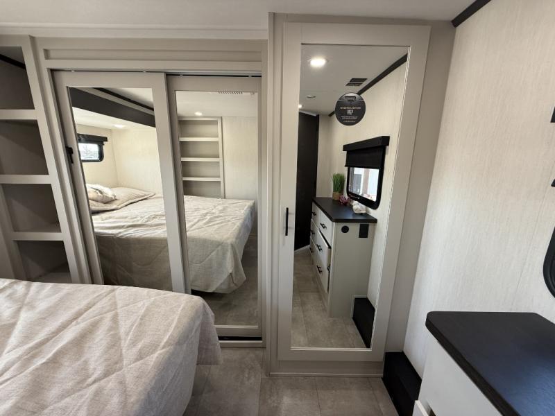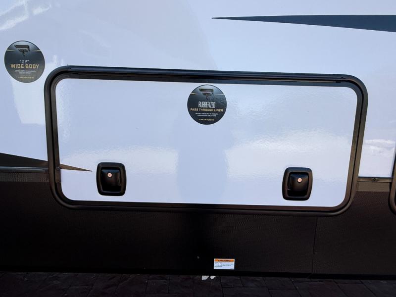 With any Crusader fifth wheel by Prime Time, you will enjoy outstanding quality and premium features! The Dexter E-Z Flex rubberized suspension equalizer will help make towing smoother than ever, and the high gloss gel coated exterior fiberglass is sure to be eye-catching. There are also thick insulated pass-through storage baggage doors outside, along with a 102" wide body, and hassle-free one-touch auto leveling. Inside, you'll find real wood cabinet doors, carpet-less slide rooms, blackout roller shades, and stain resistant, easy clean furniture. The Crusader fifth wheels are built with Eternabond construction, a one-piece PVC roof membrane, radiant foil insulation, plus rack and pinion slide systems.