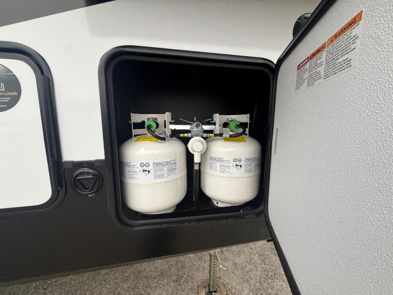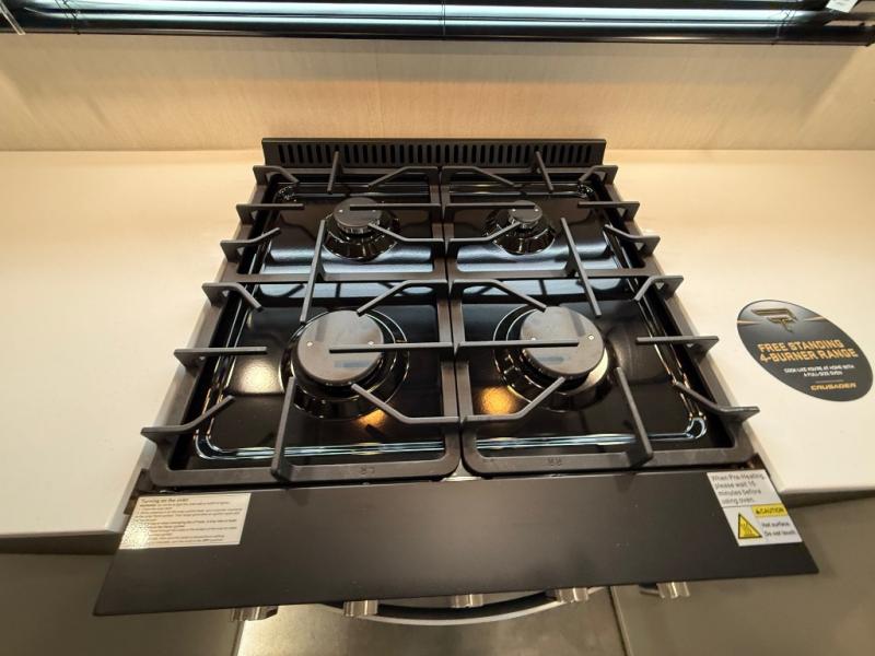 With any Crusader fifth wheel by Prime Time, you will enjoy outstanding quality and premium features! The Dexter E-Z Flex rubberized suspension equalizer will help make towing smoother than ever, and the high gloss gel coated exterior fiberglass is sure to be eye-catching. There are also thick insulated pass-through storage baggage doors outside, along with a 102" wide body, and hassle-free one-touch auto leveling. Inside, you'll find real wood cabinet doors, carpet-less slide rooms, blackout roller shades, and stain resistant, easy clean furniture. The Crusader fifth wheels are built with Eternabond construction, a one-piece PVC roof membrane, radiant foil insulation, plus rack and pinion slide systems.