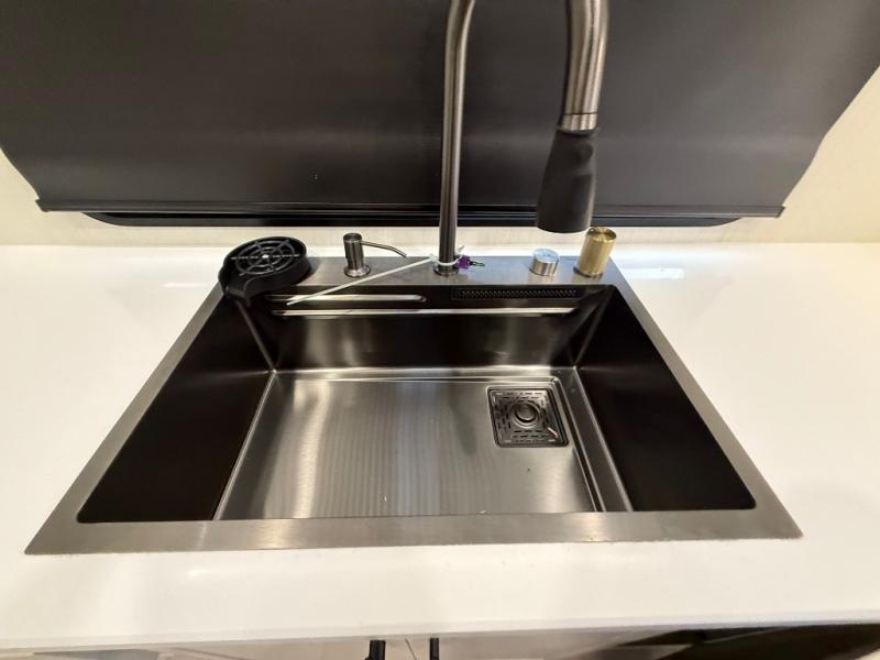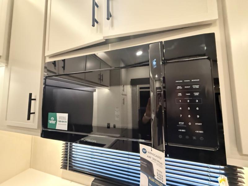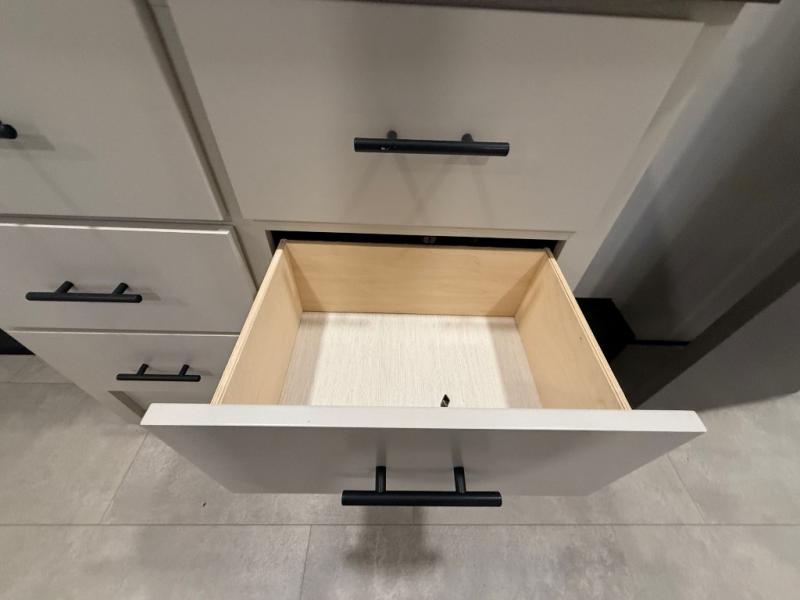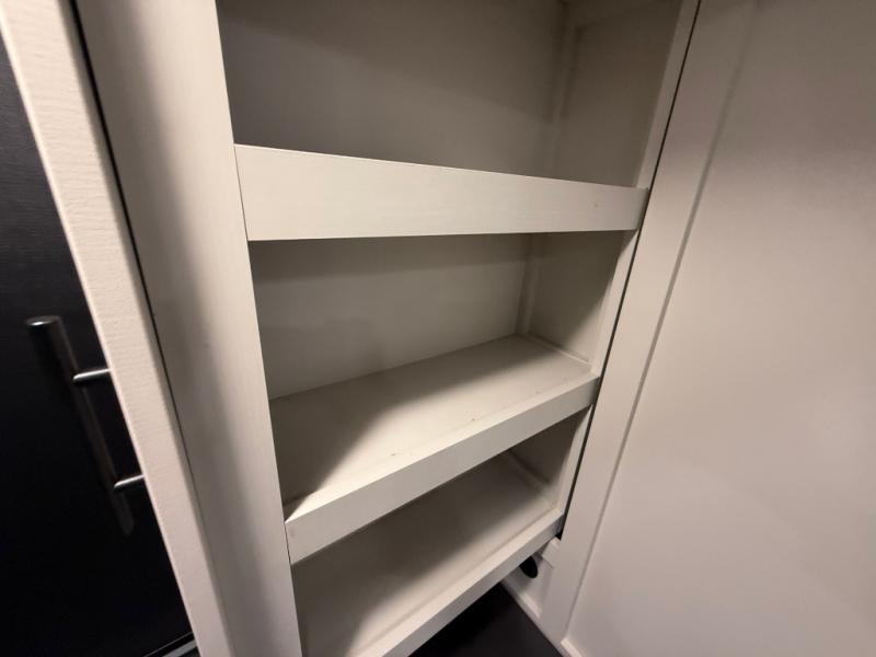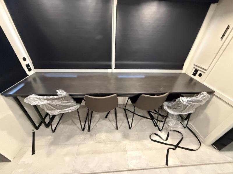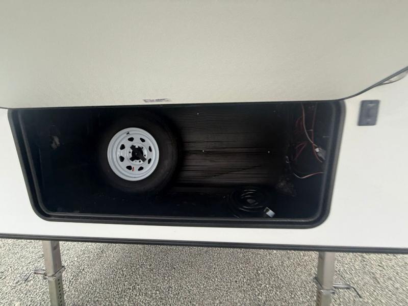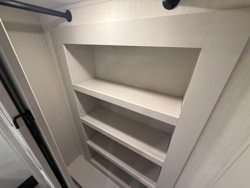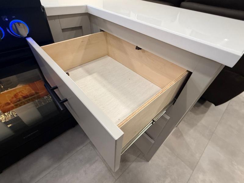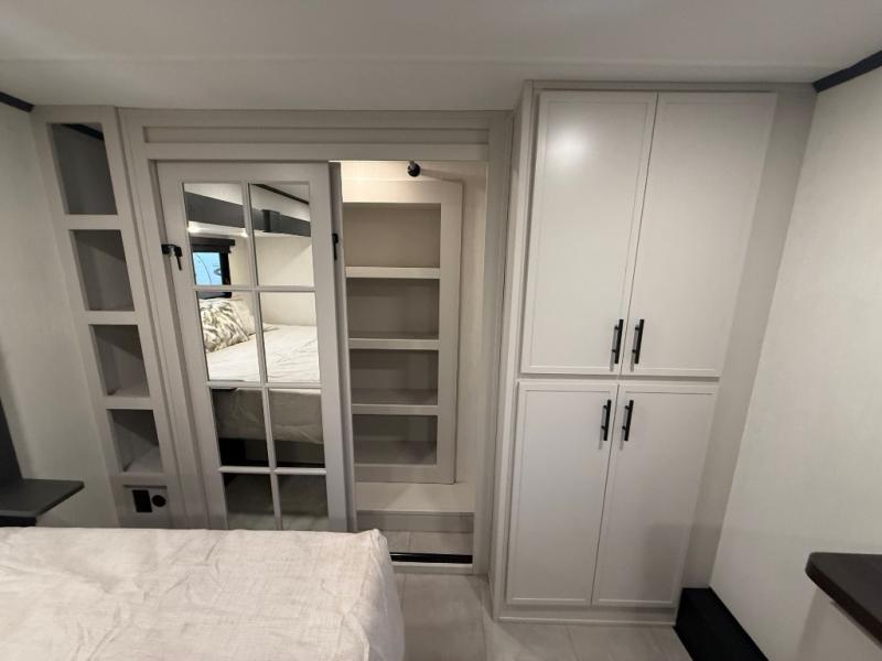 If you enjoy camping with family or friends, this fifth wheel is sure to meet all of your needs! The front bedroom includes a King bed slide out for more space and comfort, plus a front wardrobe/washer and dryer prep. And the full bath is right next door for easy nighttime use. The living room is made spacious thanks to the dual opposing slides, and you'll find a sectional sleeper sofa here, as well as a hybrid desk/dinette, perfect for a quick meal and to catch up with some emails. And don't overlook the rear kitchen with ample counter space, a four burner range, an accessory sink and a French door 12V refrigerator!