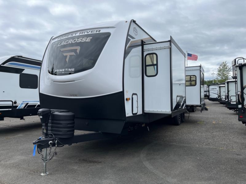 If you used to think that you had to spend a fortune to get a luxury RV, think again because the Prime Time LaCrosse travel trailer proves that you can combine luxury with value! The LaCrosse features premium solid wood core cabinetry, solid surface countertops, an 82" interior ceiling height, motion-sensor LED lighting, and USB ports. On the exterior, the fully enclosed underbelly protects your unit so that you can adventure during colder weather, and the power awning w/ LED lights is certainly a valuable feature that allows you to sit outside underneath some shade on a sunny afternoon. Come choose your model today!