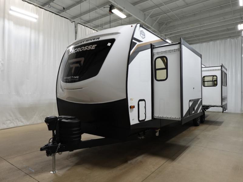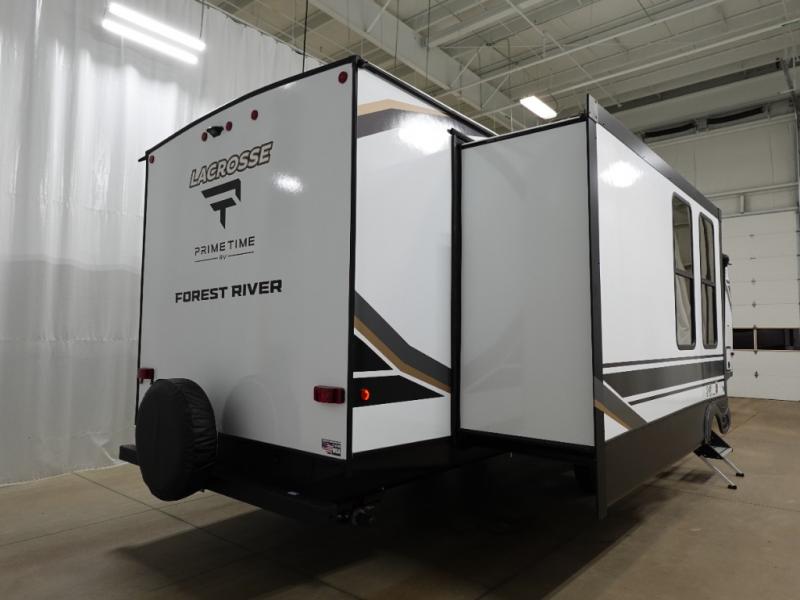 If you used to think that you had to spend a fortune to get a luxury RV, think again because the Prime Time LaCrosse travel trailer proves that you can combine luxury with value! The LaCrosse features premium solid wood core cabinetry, solid surface countertops, an 82" interior ceiling height, motion-sensor LED lighting, and USB ports. On the exterior, the fully enclosed underbelly protects your unit so that you can adventure during colder weather, and the power awning w/ LED lights is certainly a valuable feature that allows you to sit outside underneath some shade on a sunny afternoon. Come choose your model today!