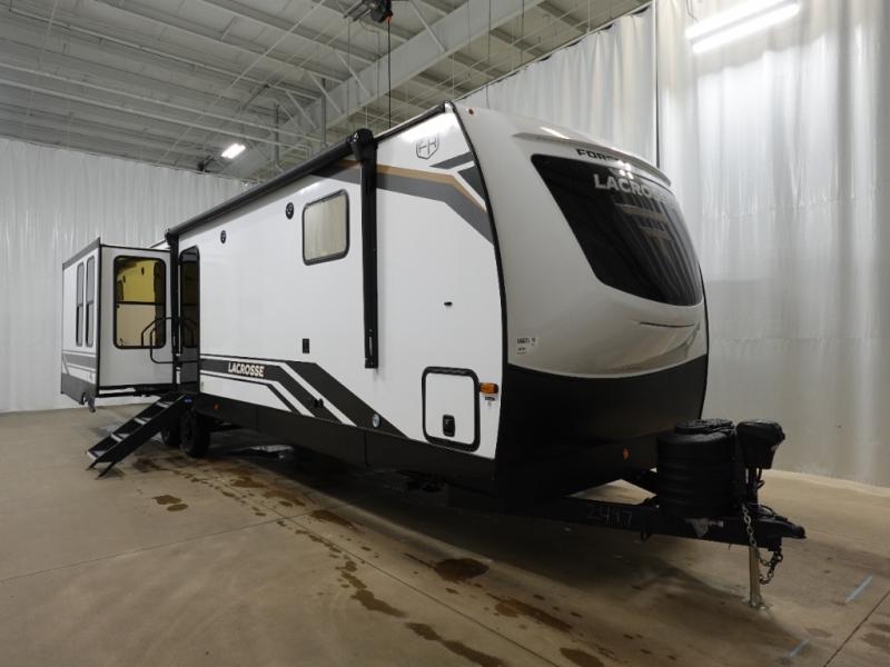 If you used to think that you had to spend a fortune to get a luxury RV, think again because the Prime Time LaCrosse travel trailer proves that you can combine luxury with value! The LaCrosse features premium solid wood core cabinetry, solid surface countertops, an 82" interior ceiling height, motion-sensor LED lighting, and USB ports. On the exterior, the fully enclosed underbelly protects your unit so that you can adventure during colder weather, and the power awning w/ LED lights is certainly a valuable feature that allows you to sit outside underneath some shade on a sunny afternoon. Come choose your model today!
