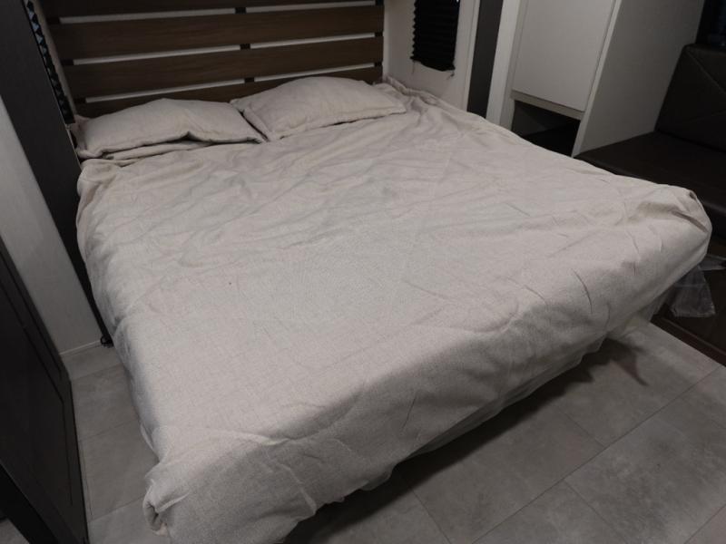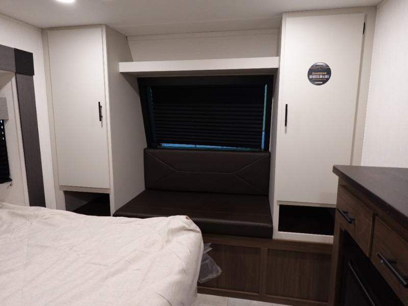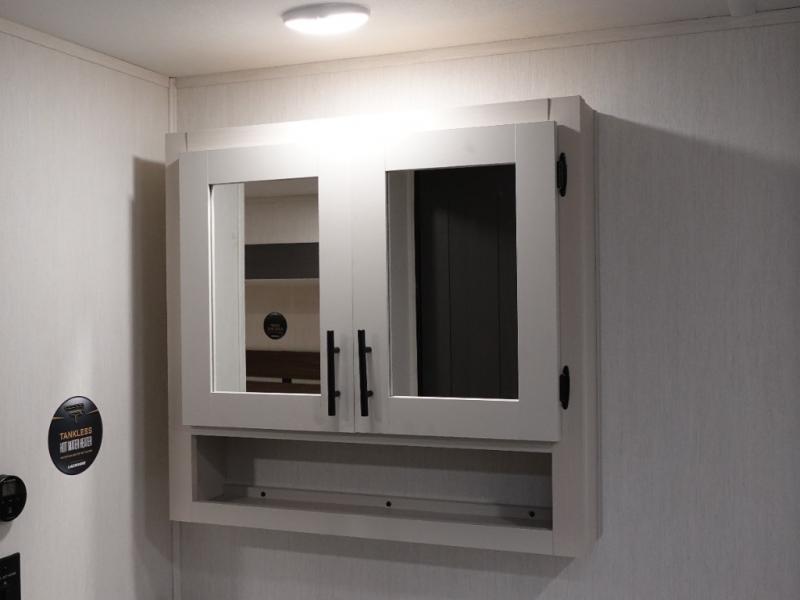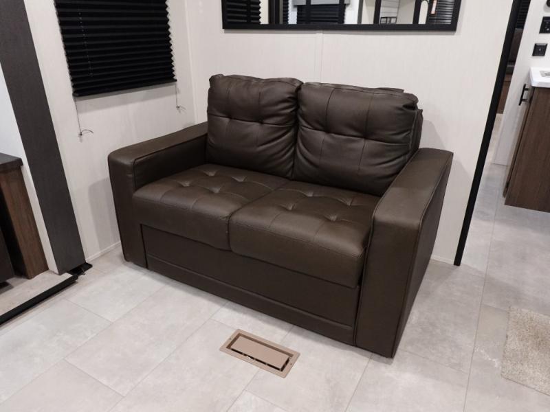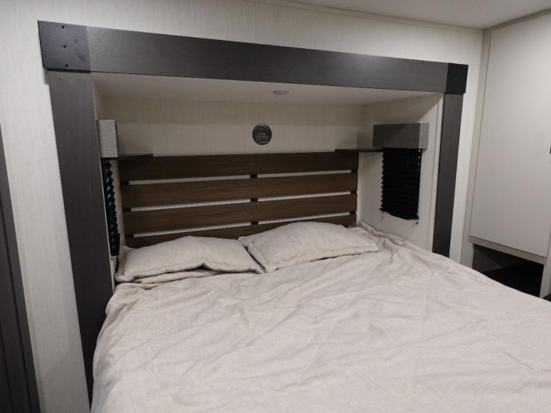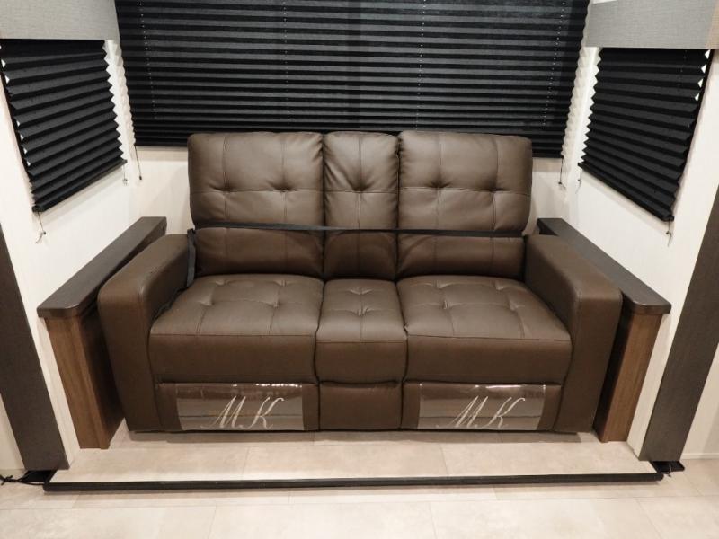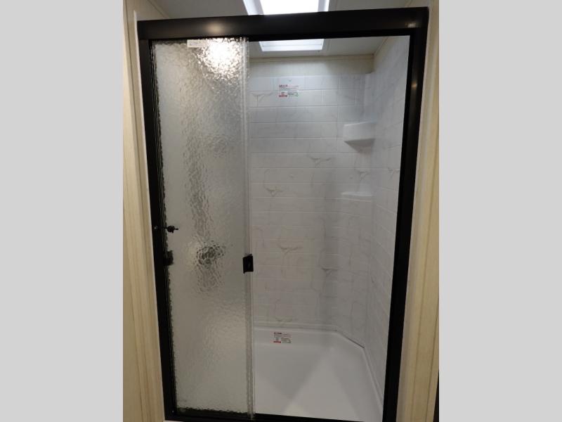 You will be ultra impressed by this LaCrosse travel trailer! First, the interior is made to feel just like your own home with its theater seating, hide-a-bed sofa, free-standing table with chairs, and entertainment center with 50" LED TV and fireplace. Second, you'll find even more residential comfort in the rear kitchen that has a three burner cooktop, a 30" microwave oven, and a 16.2 cubic foot 12V refrigerator. And lastly, the walk-through bathroom has two doors on either side with one of those doors leading directly into the front private bedroom, so you know you'll enjoy great comfort in this space each night. There is also a bedroom bench at the front of this trailer which gives you an enjoyable place to relax as you take in the views from the front windshield.