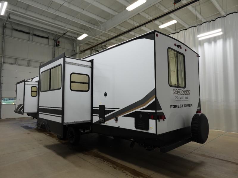 If you used to think that you had to spend a fortune to get a luxury RV, think again because the Prime Time LaCrosse travel trailer proves that you can combine luxury with value! The LaCrosse features premium solid wood core cabinetry, solid surface countertops, an 82" interior ceiling height, motion-sensor LED lighting, and USB ports. On the exterior, the fully enclosed underbelly protects your unit so that you can adventure during colder weather, and the power awning w/ LED lights is certainly a valuable feature that allows you to sit outside underneath some shade on a sunny afternoon. Come choose your model today!