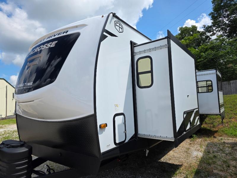 If you used to think that you had to spend a fortune to get a luxury RV, think again because the Prime Time LaCrosse travel trailer proves that you can combine luxury with value! The LaCrosse features premium solid wood core cabinetry, solid surface countertops, an 82" interior ceiling height, motion-sensor LED lighting, and USB ports. On the exterior, the fully enclosed underbelly protects your unit so that you can adventure during colder weather, and the power awning w/ LED lights is certainly a valuable feature that allows you to sit outside underneath some shade on a sunny afternoon. Come choose your model today!