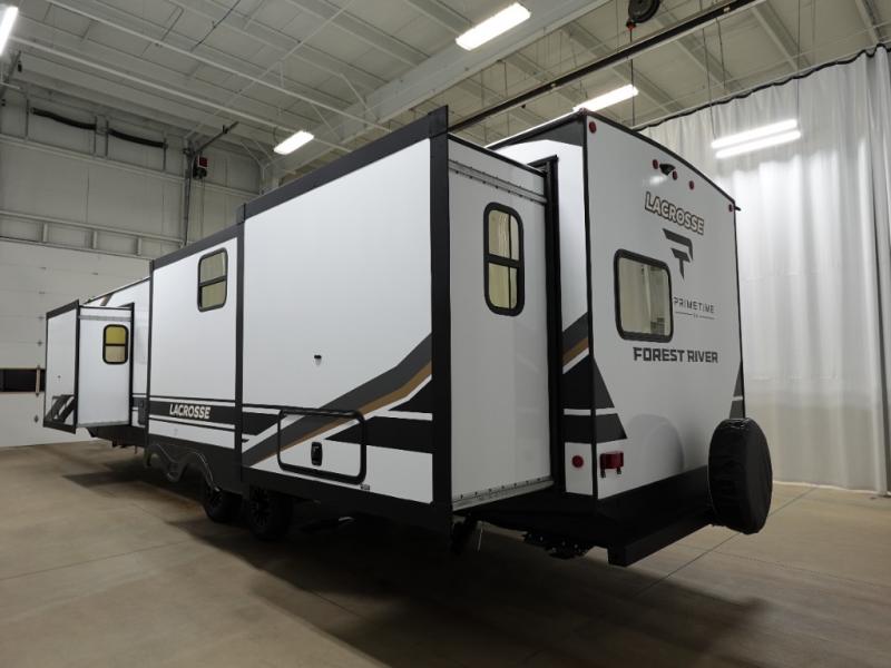 If you used to think that you had to spend a fortune to get a luxury RV, think again because the Prime Time LaCrosse travel trailer proves that you can combine luxury with value! The LaCrosse features premium solid wood core cabinetry, solid surface countertops, an 82" interior ceiling height, motion-sensor LED lighting, and USB ports. On the exterior, the fully enclosed underbelly protects your unit so that you can adventure during colder weather, and the power awning w/ LED lights is certainly a valuable feature that allows you to sit outside underneath some shade on a sunny afternoon. Come choose your model today!