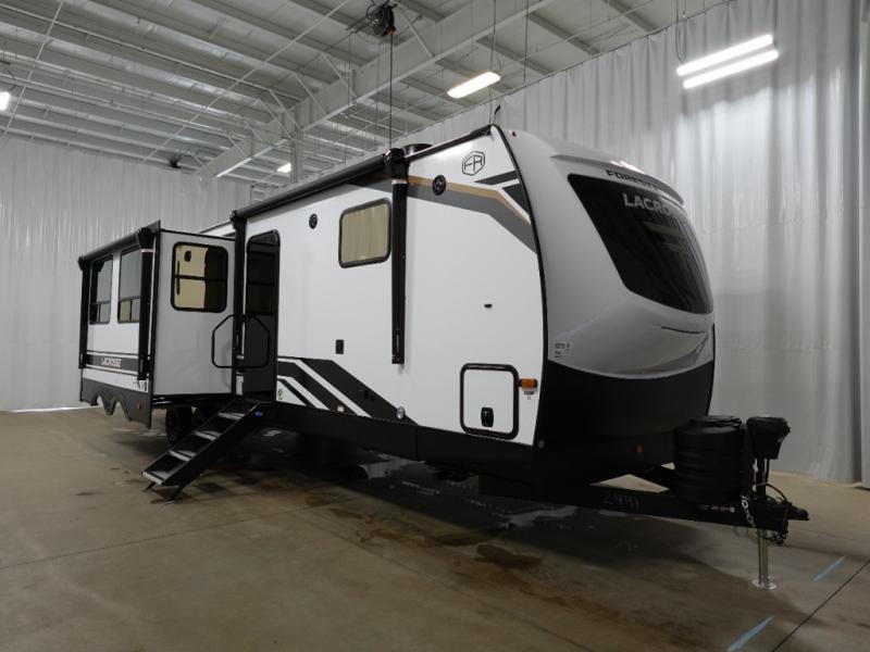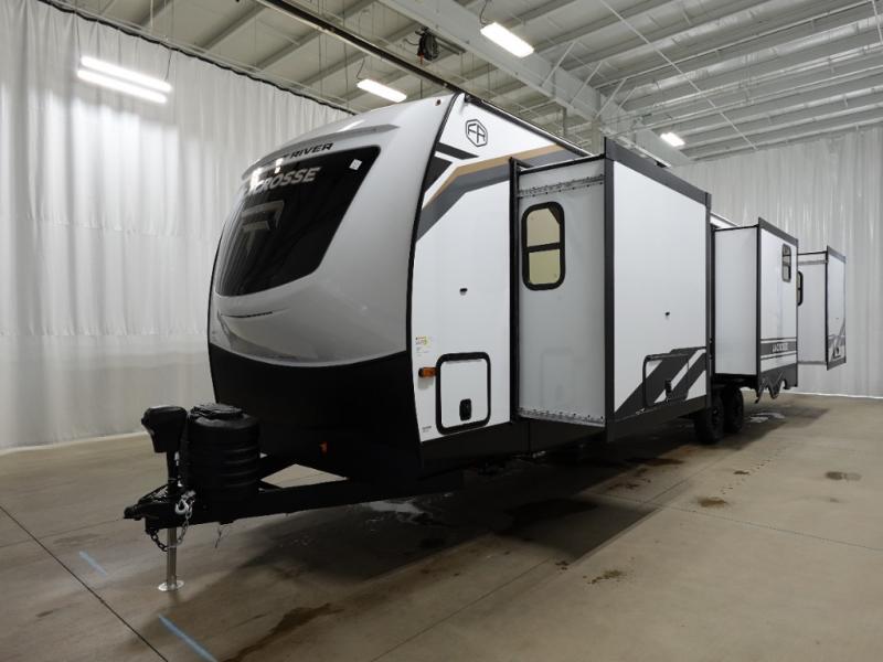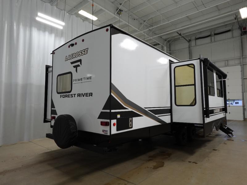 If you used to think that you had to spend a fortune to get a luxury RV, think again because the Prime Time LaCrosse travel trailer proves that you can combine luxury with value! The LaCrosse features premium solid wood core cabinetry, solid surface countertops, an 82" interior ceiling height, motion-sensor LED lighting, and USB ports. On the exterior, the fully enclosed underbelly protects your unit so that you can adventure during colder weather, and the power awning w/ LED lights is certainly a valuable feature that allows you to sit outside underneath some shade on a sunny afternoon. Come choose your model today!