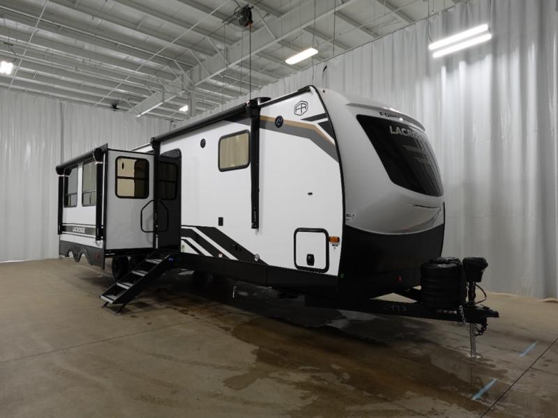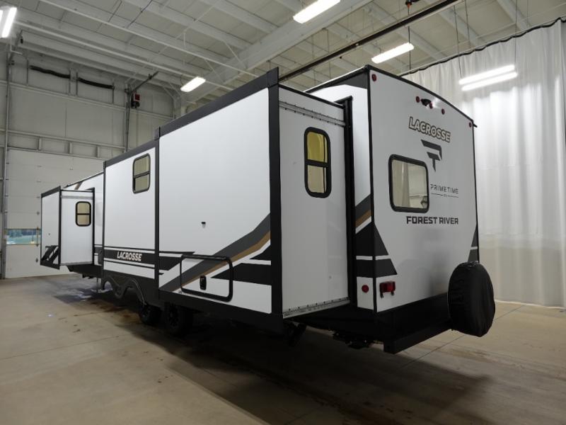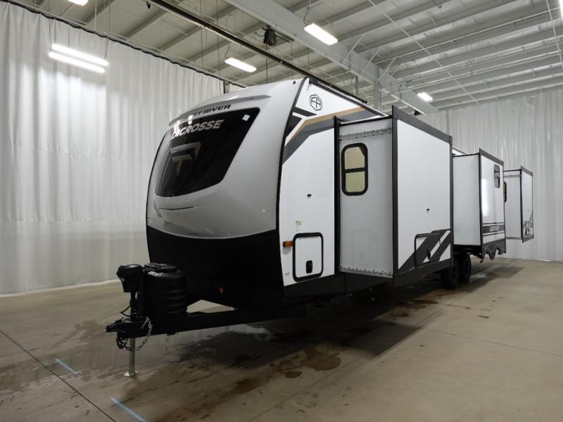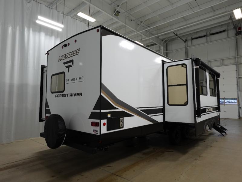 If you used to think that you had to spend a fortune to get a luxury RV, think again because the Prime Time LaCrosse travel trailer proves that you can combine luxury with value! The LaCrosse features premium solid wood core cabinetry, solid surface countertops, an 82" interior ceiling height, motion-sensor LED lighting, and USB ports. On the exterior, the fully enclosed underbelly protects your unit so that you can adventure during colder weather, and the power awning w/ LED lights is certainly a valuable feature that allows you to sit outside underneath some shade on a sunny afternoon. Come choose your model today!