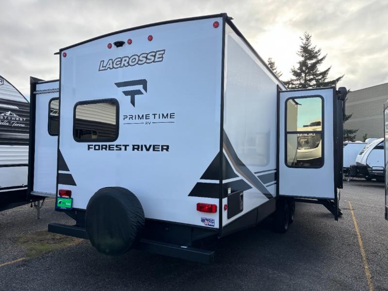 If you used to think that you had to spend a fortune to get a luxury RV, think again because the Prime Time LaCrosse travel trailer proves that you can combine luxury with value! The LaCrosse features premium solid wood core cabinetry, solid surface countertops, an 82" interior ceiling height, motion-sensor LED lighting, and USB ports. On the exterior, the fully enclosed underbelly protects your unit so that you can adventure during colder weather, and the power awning w/ LED lights is certainly a valuable feature that allows you to sit outside underneath some shade on a sunny afternoon. Come choose your model today!