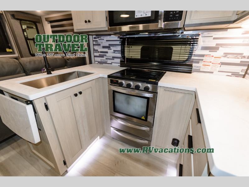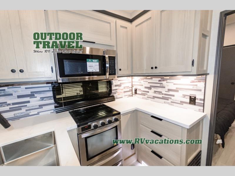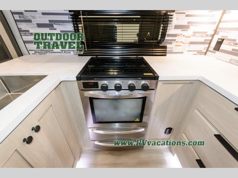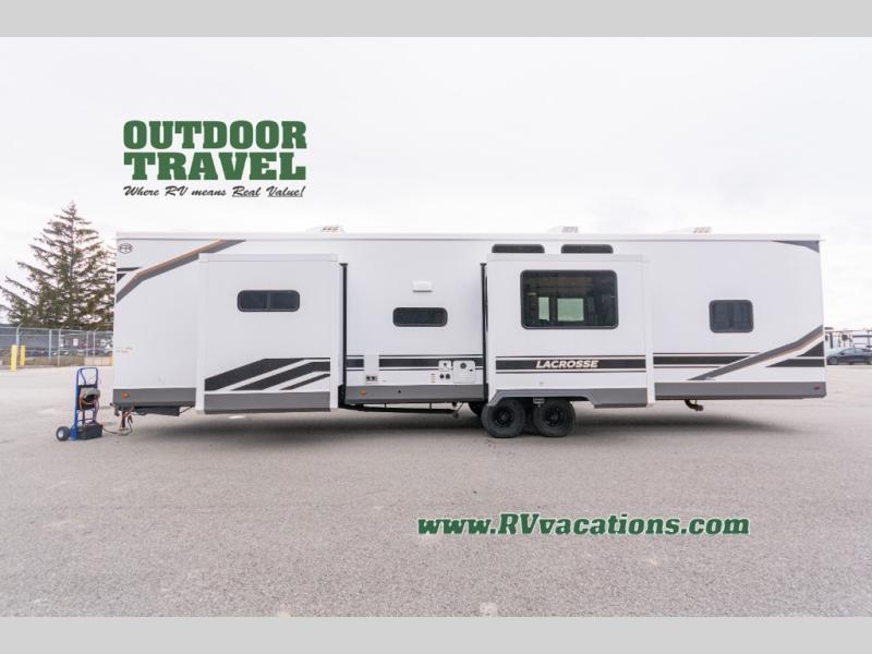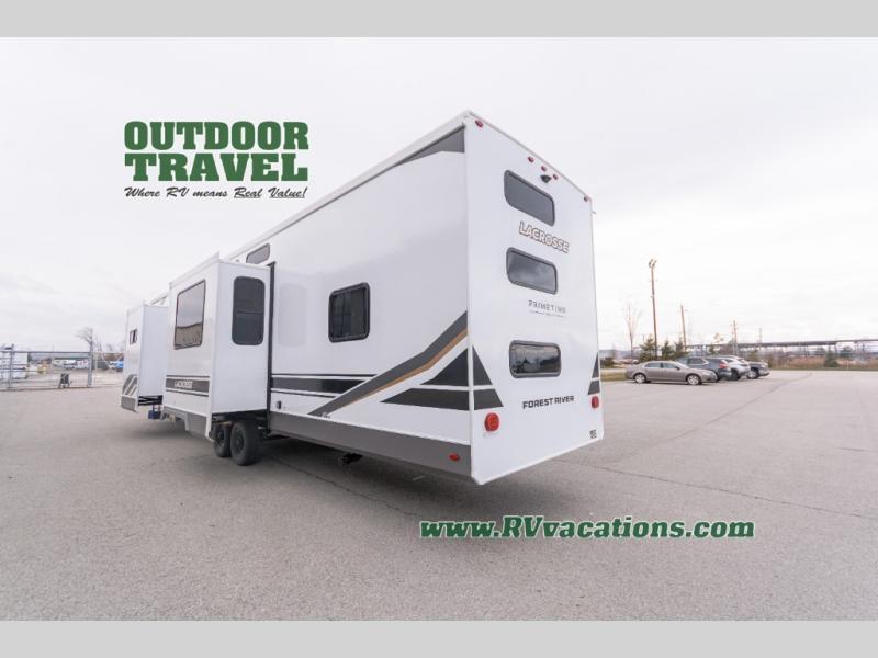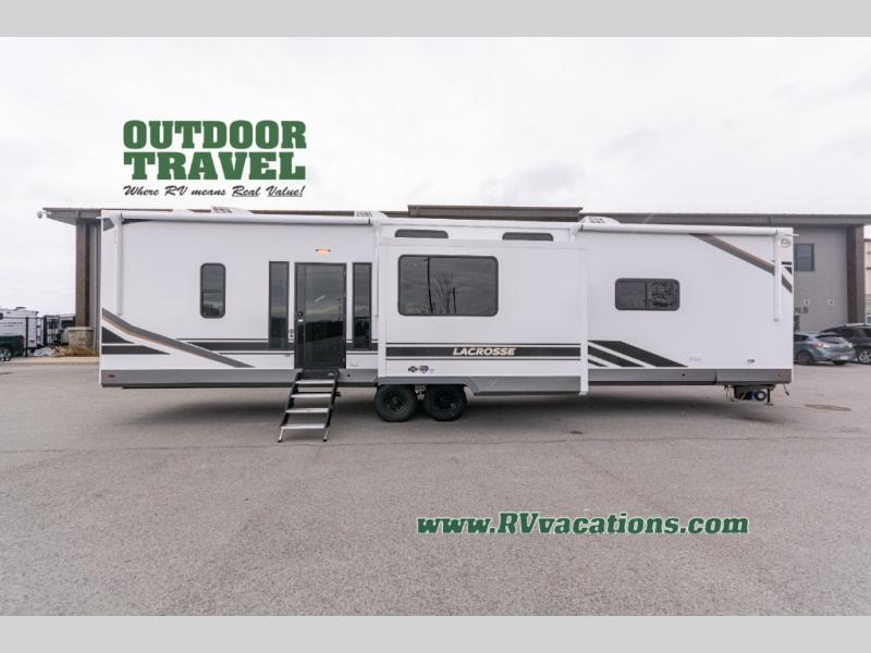 If you used to think that you had to spend a fortune to get a luxury RV, think again because the Prime Time LaCrosse travel trailer proves that you can combine luxury with value! The LaCrosse features premium solid wood core cabinetry, solid surface countertops, an 82" interior ceiling height, motion-sensor LED lighting, and USB ports. On the exterior, the fully enclosed underbelly protects your unit so that you can adventure during colder weather, and the power awning w/ LED lights is certainly a valuable feature that allows you to sit outside underneath some shade on a sunny afternoon. Come choose your model today!
