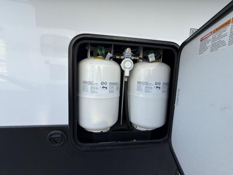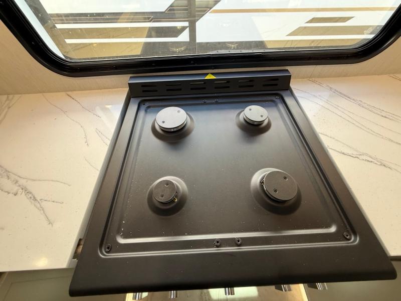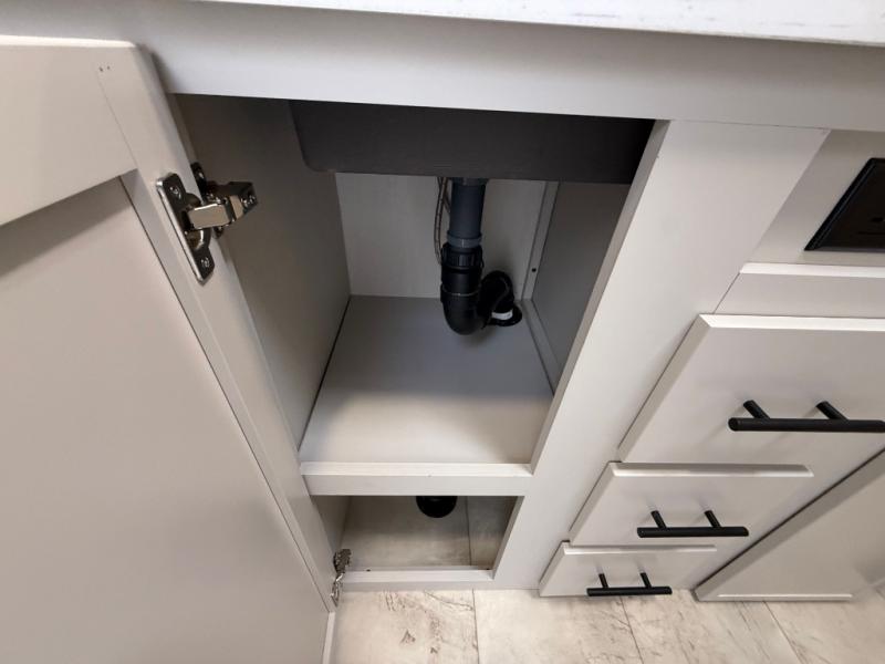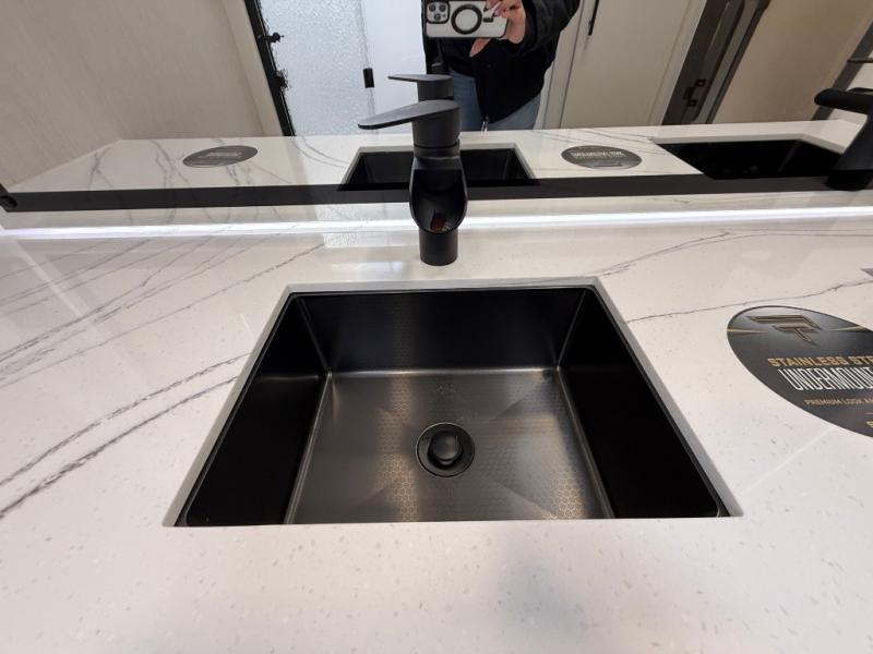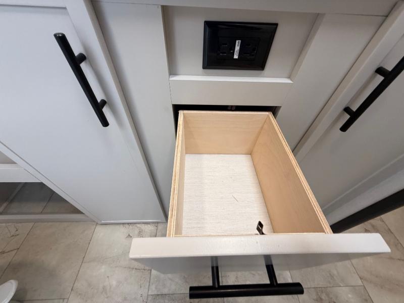 The Sanibel series stands out with a combination of unique and highly functional exterior and interior features designed for both convenience and durability. On the outside, a drop-frame pass-through storage area with a rubberized liner offers ample space while protecting your gear from moisture and wear. Setting up camp is effortless thanks to the one-touch auto-leveling system and rubberized suspension equalizer, which provide a smooth and stable foundation. Inside, comfort meets practicality with carpet less slides for easy cleaning and blackout roller shades for privacy and temperature control. The real wood cabinet doors and solid surface countertops add a touch of elegance, no matter where the road takes you.