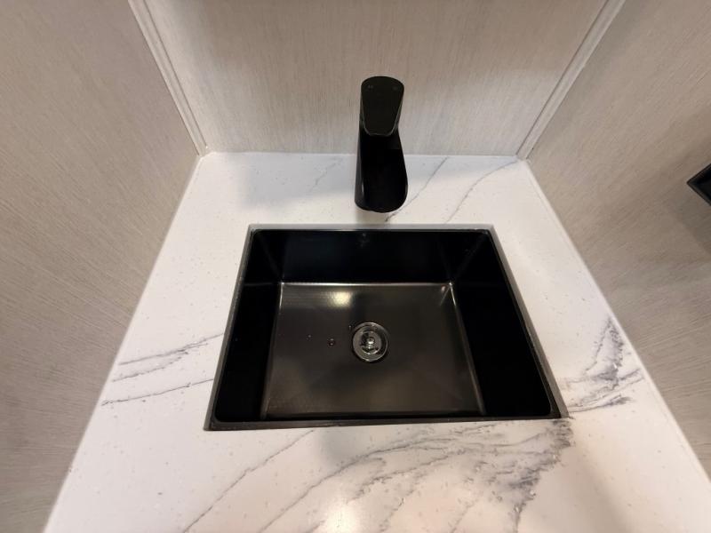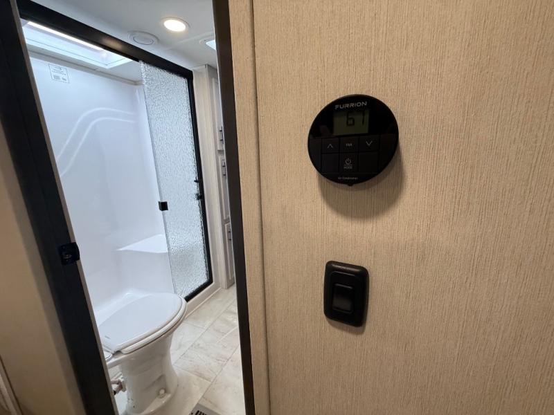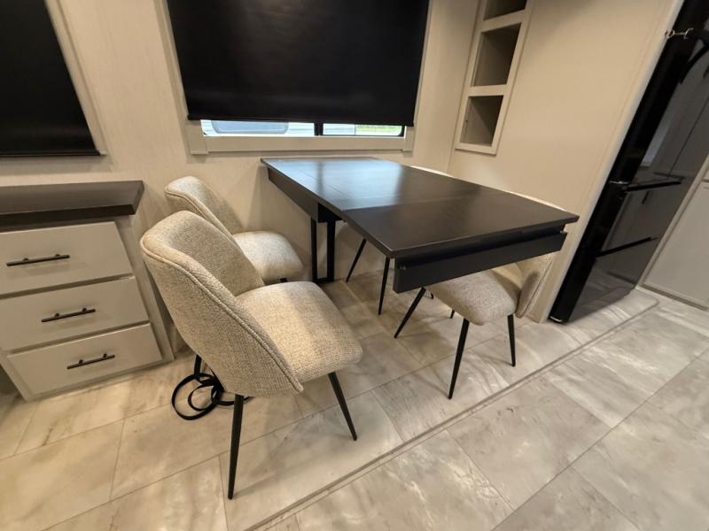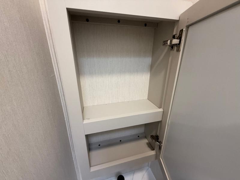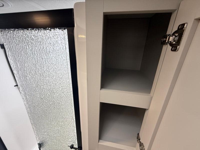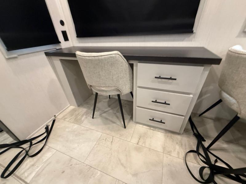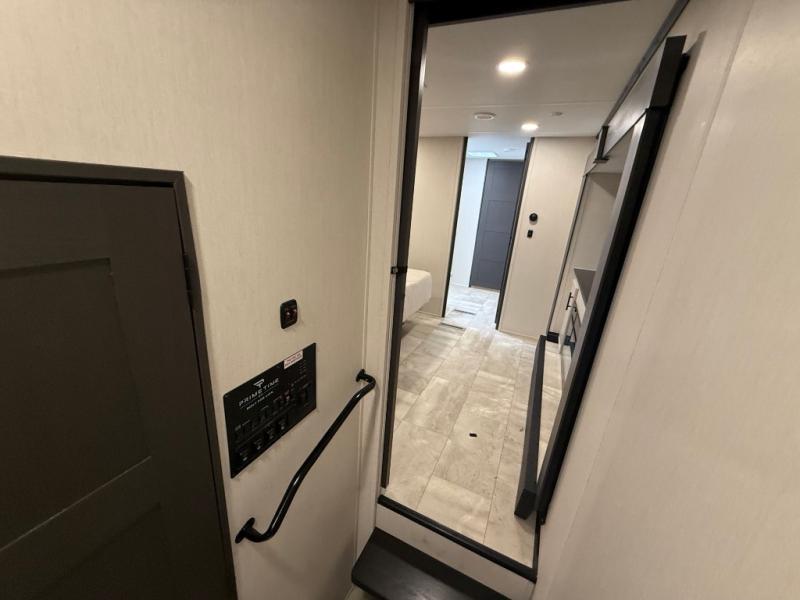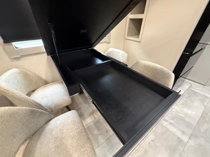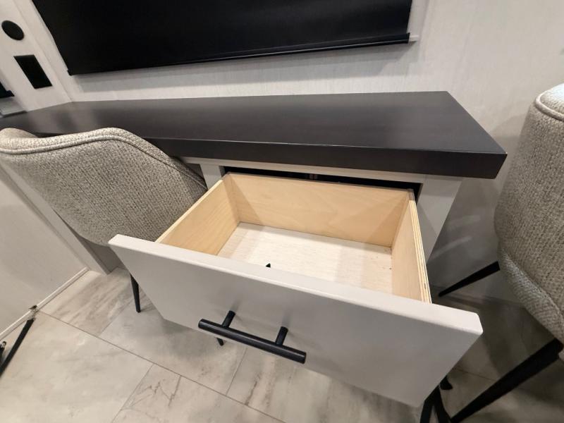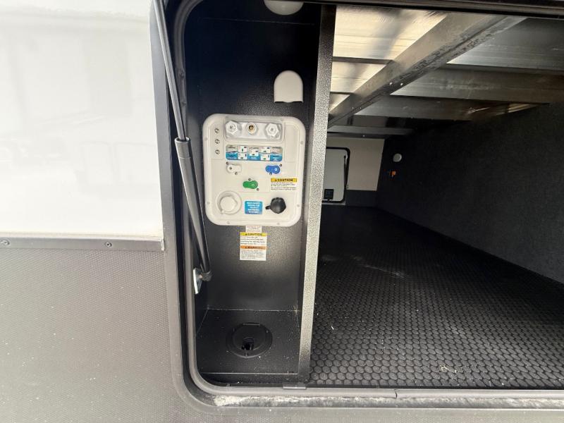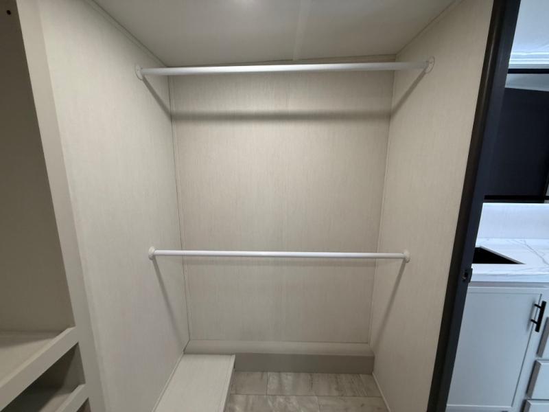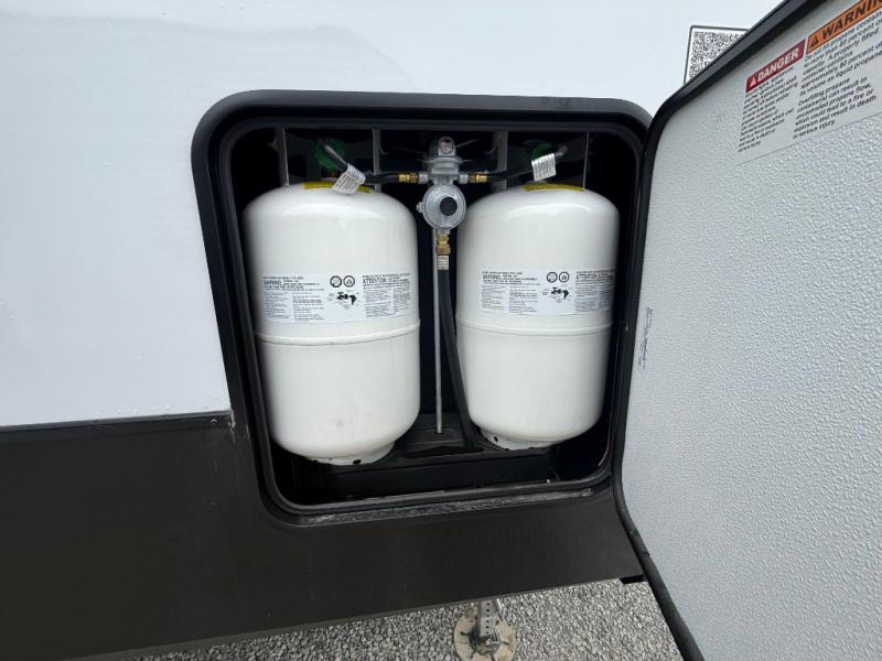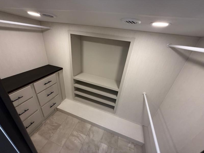 The Sanibel series stands out with a combination of unique and highly functional exterior and interior features designed for both convenience and durability. On the outside, a drop-frame pass-through storage area with a rubberized liner offers ample space while protecting your gear from moisture and wear. Setting up camp is effortless thanks to the one-touch auto-leveling system and rubberized suspension equalizer, which provide a smooth and stable foundation. Inside, comfort meets practicality with carpet less slides for easy cleaning and blackout roller shades for privacy and temperature control. The real wood cabinet doors and solid surface countertops add a touch of elegance, no matter where the road takes you.