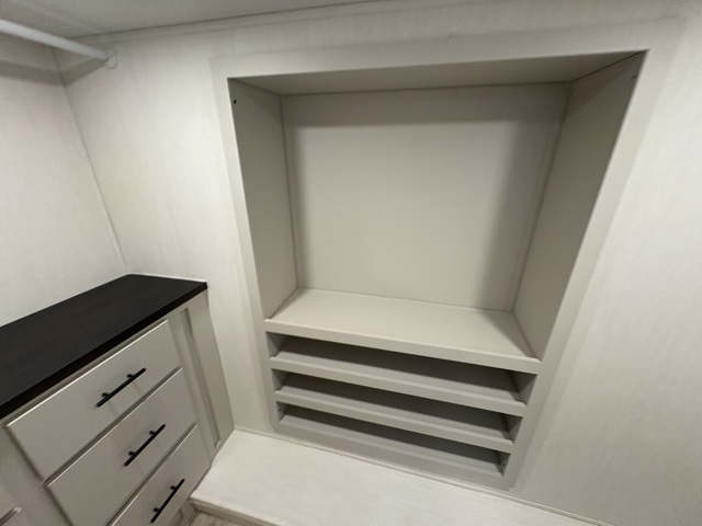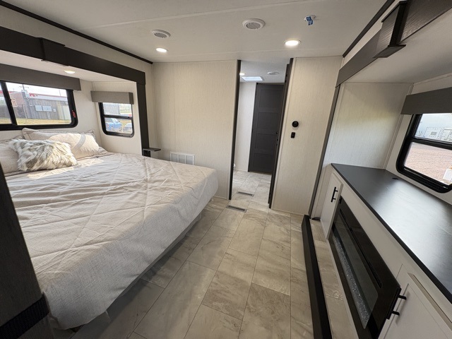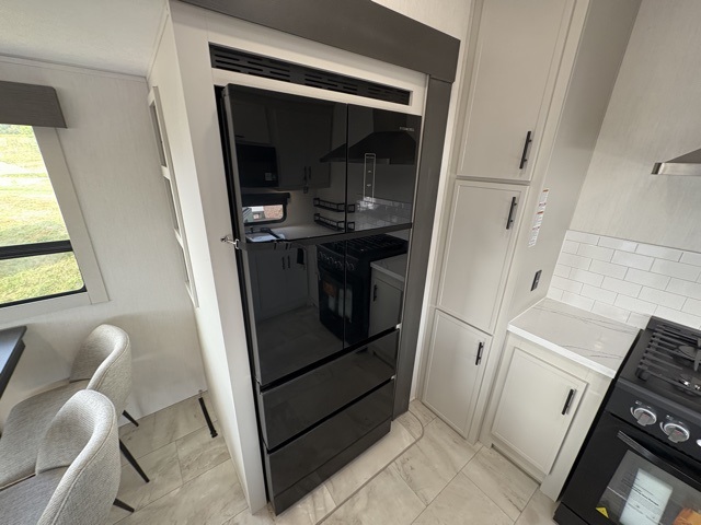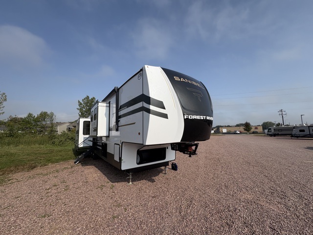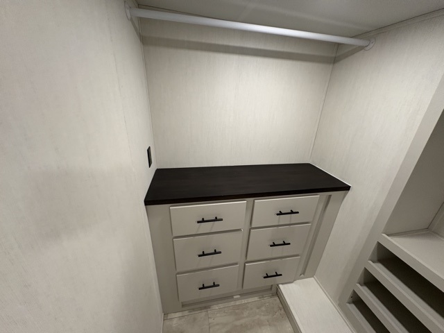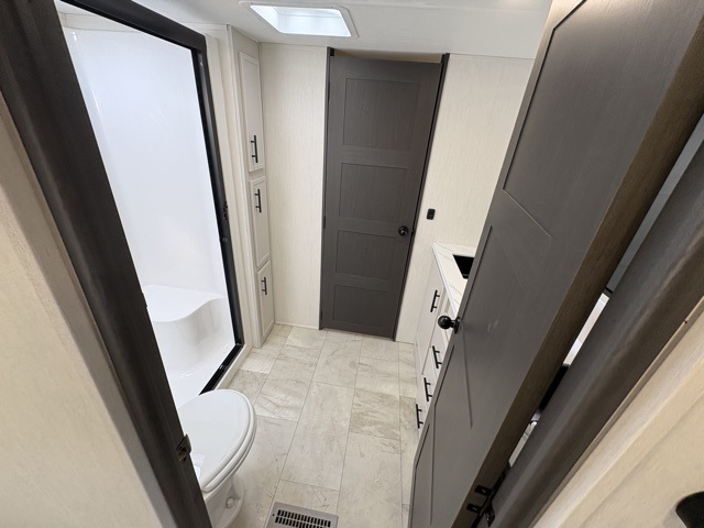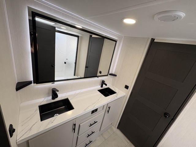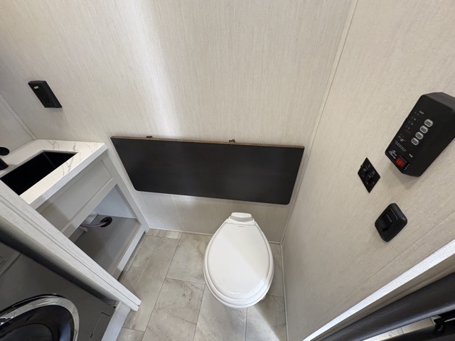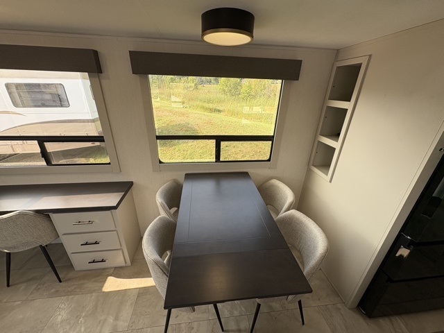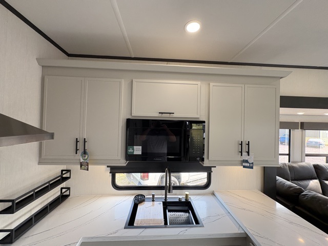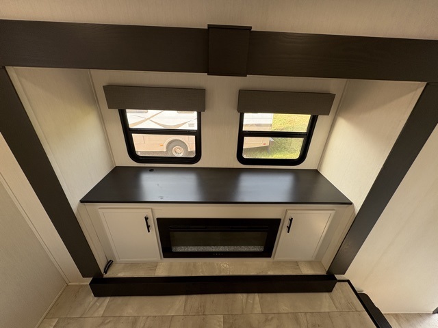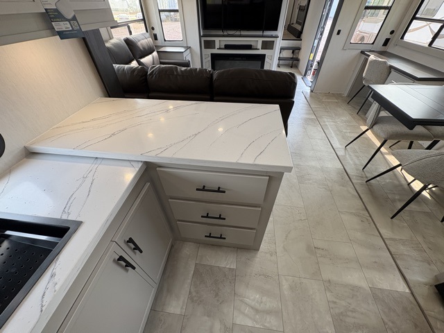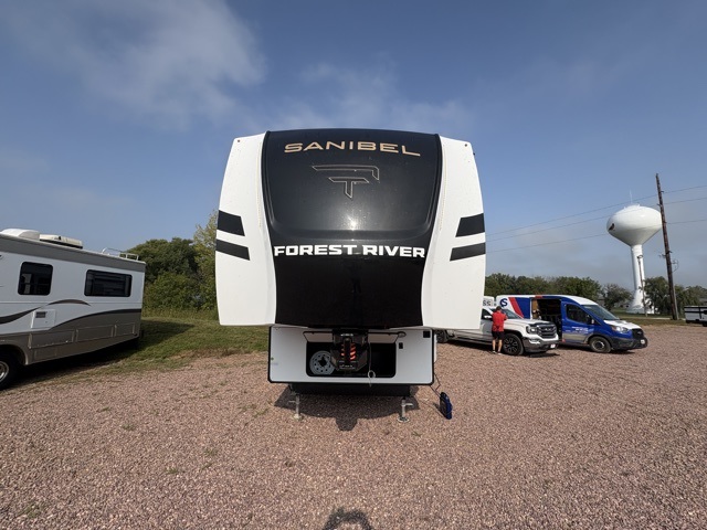 The Sanibel series stands out with a combination of unique and highly functional exterior and interior features designed for both convenience and durability. On the outside, a drop-frame pass-through storage area with a rubberized liner offers ample space while protecting your gear from moisture and wear. Setting up camp is effortless thanks to the one-touch auto-leveling system and rubberized suspension equalizer, which provide a smooth and stable foundation. Inside, comfort meets practicality with carpet less slides for easy cleaning and blackout roller shades for privacy and temperature control. The real wood cabinet doors and solid surface countertops add a touch of elegance, no matter where the road takes you.