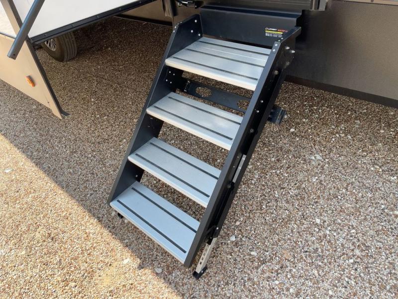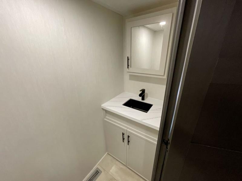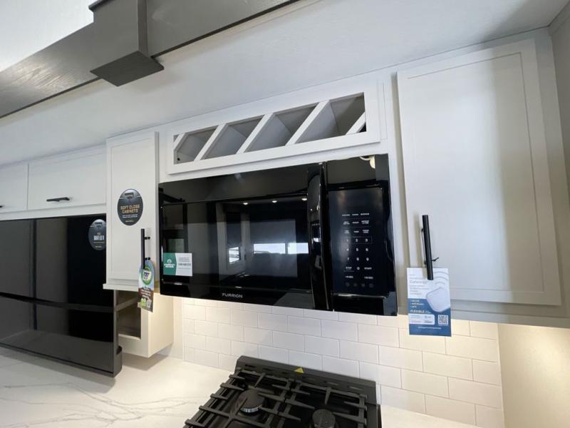 The Sanibel series stands out with a combination of unique and highly functional exterior and interior features designed for both convenience and durability. On the outside, a drop-frame pass-through storage area with a rubberized liner offers ample space while protecting your gear from moisture and wear. Setting up camp is effortless thanks to the one-touch auto-leveling system and rubberized suspension equalizer, which provide a smooth and stable foundation. Inside, comfort meets practicality with carpet less slides for easy cleaning and blackout roller shades for privacy and temperature control. The real wood cabinet doors and solid surface countertops add a touch of elegance, no matter where the road takes you.