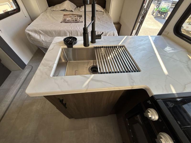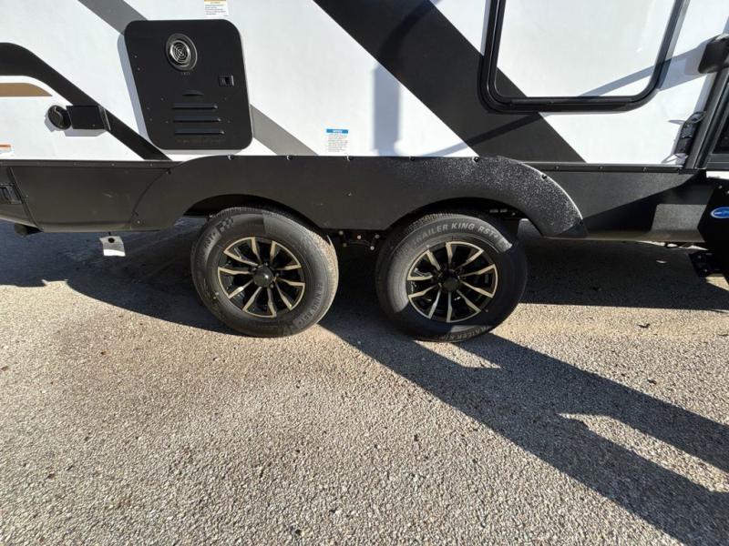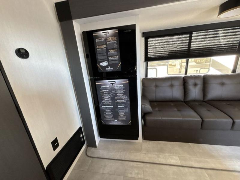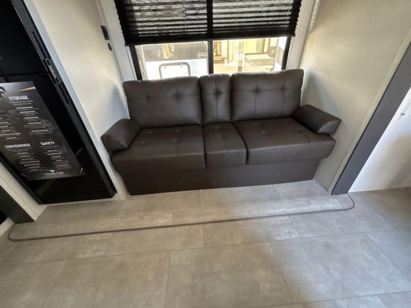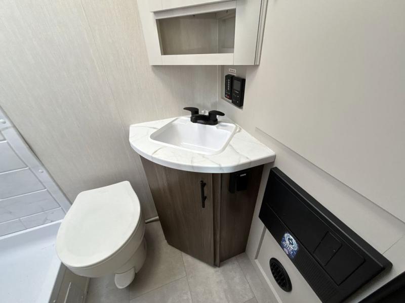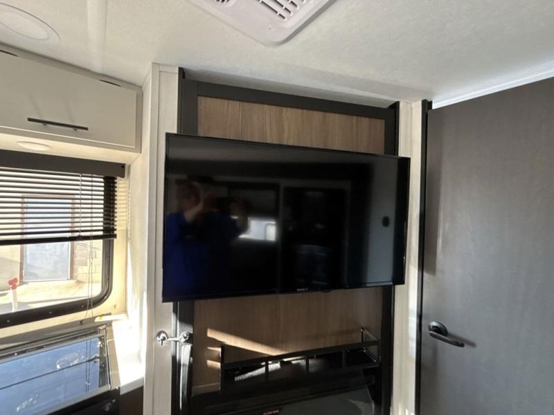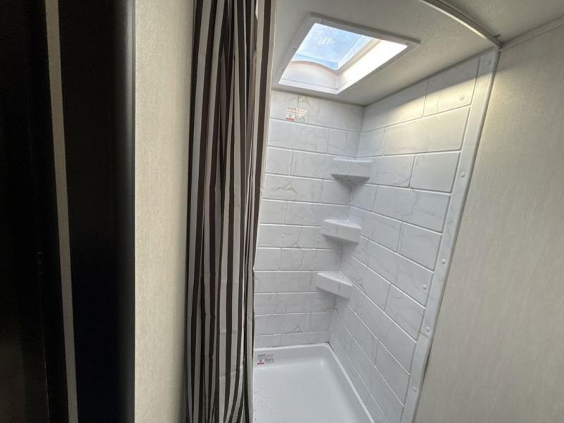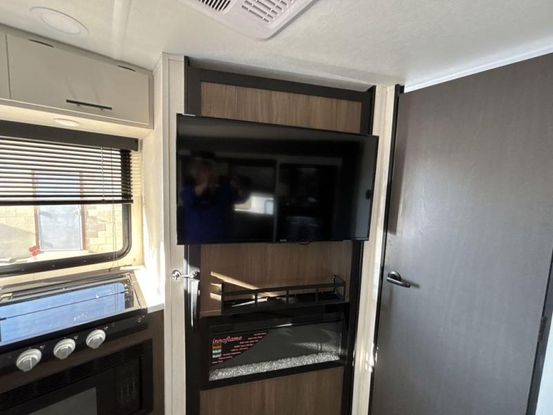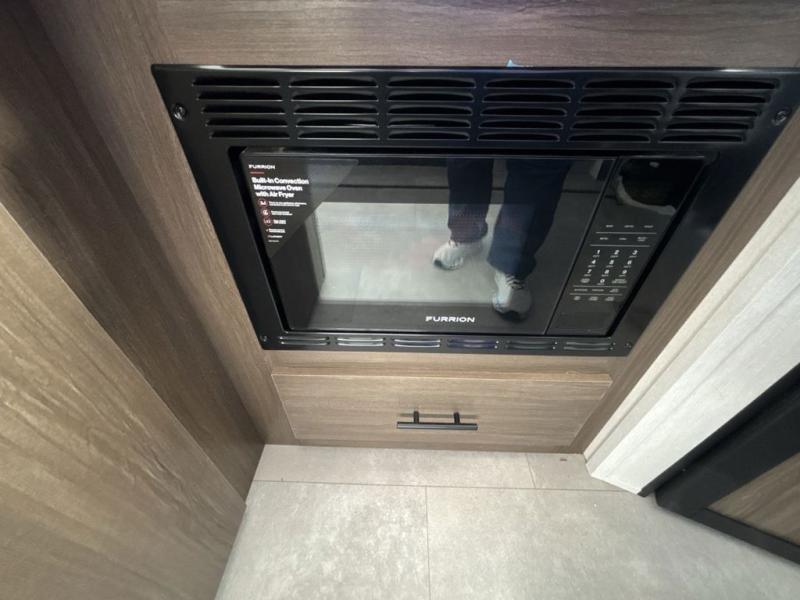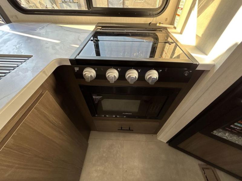This travel trailer features an array of premium amenities! The spacious full rear shower provides a rejuvenating retreat, perfect for unwinding after a long day. The sophisticated entertainment center is ideal for cozy nights in, and the plush jackknife sofa offers a comfortable spot to relax or sleep. Generous storage space for your belongings is provided by ample overhead cabinets. Further, the gourmet kitchen is equipped with a convenient side 12V fridge, high-performance three-burner cooktop, and cleverly designed hidden pantry, making meal prep and cooking a true delight. Plus, the majestic front bedroom features a sumptuous king bed that will make you feel like you are sleeping in the clouds, expansive wardrobes, and overhead cabinets for storing your essentials.
