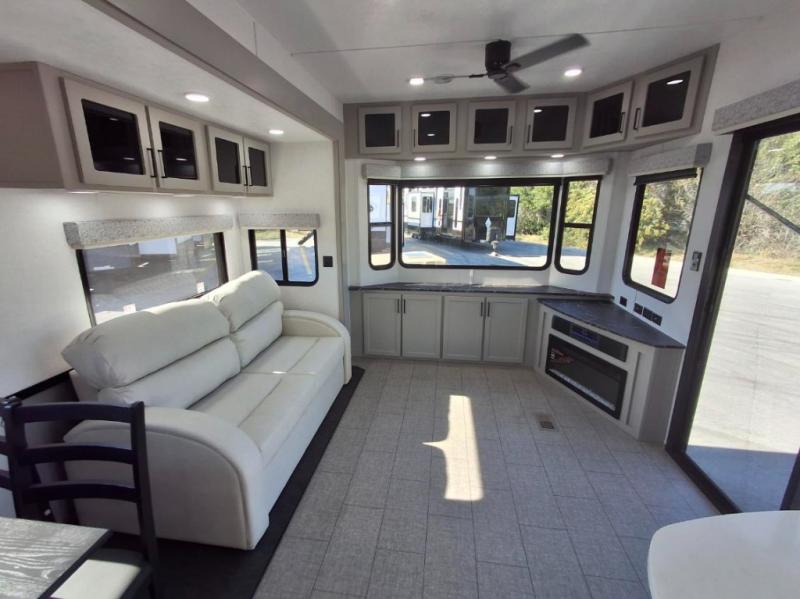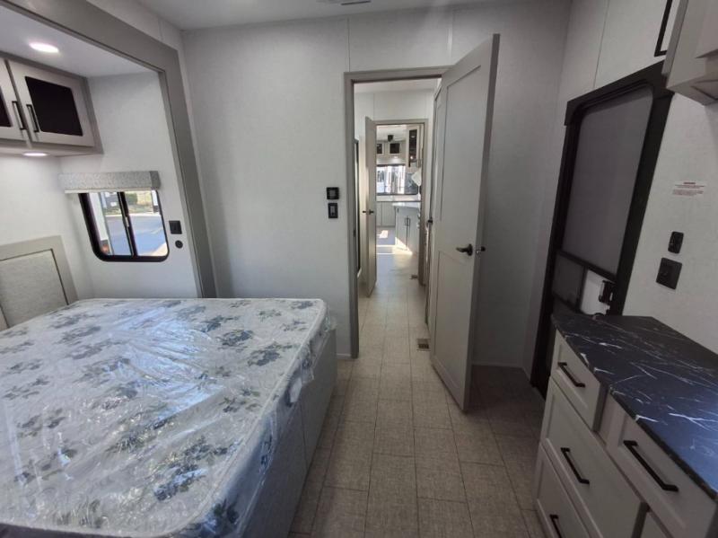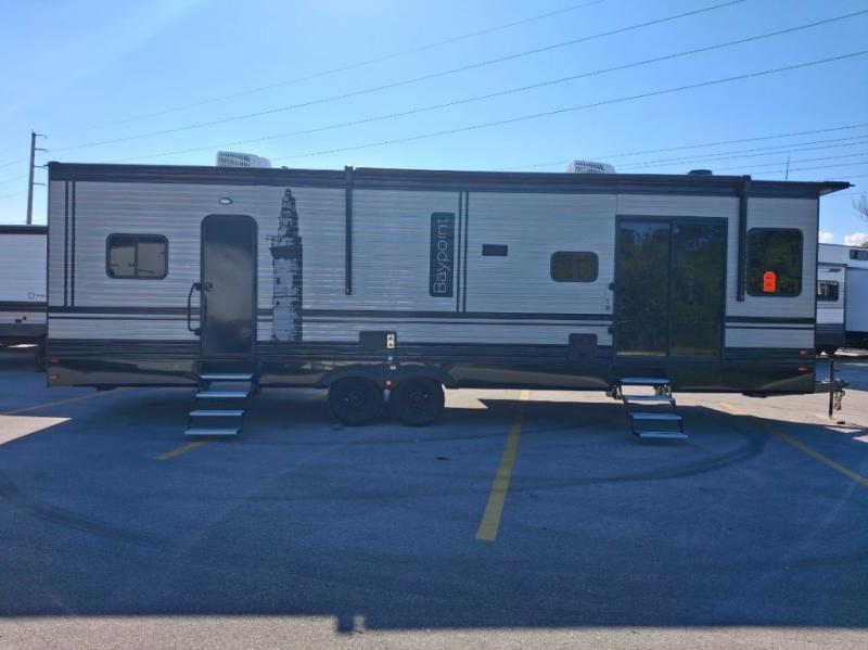 Save Huge 10% OFF ALL NEW UNITS! up to 3000.00 instant savings on select unitsThe 2026 Baypoint 351-FLWB is a destination trailer from Recreation by Design designed for full-time living with residential-style amenities, a maximum sleeping capacity of 4, and a layout that includes a full kitchen, full bathroom, and separate master bedroom. Key features include a large bay window, full-size appliances, residential-style shower, and a king-size bed with under-bed storage. It is built on a heavy-duty frame and is equipped with a central control board, but it does not come with holding tanks as a standard feature, assuming the user will be at a site with sewer infrastructure.