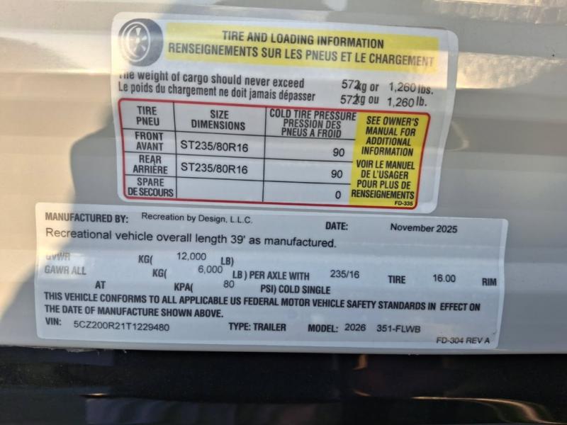 New 2026 Recreation By Design Baypoint 351-FLWB Destination Trailer