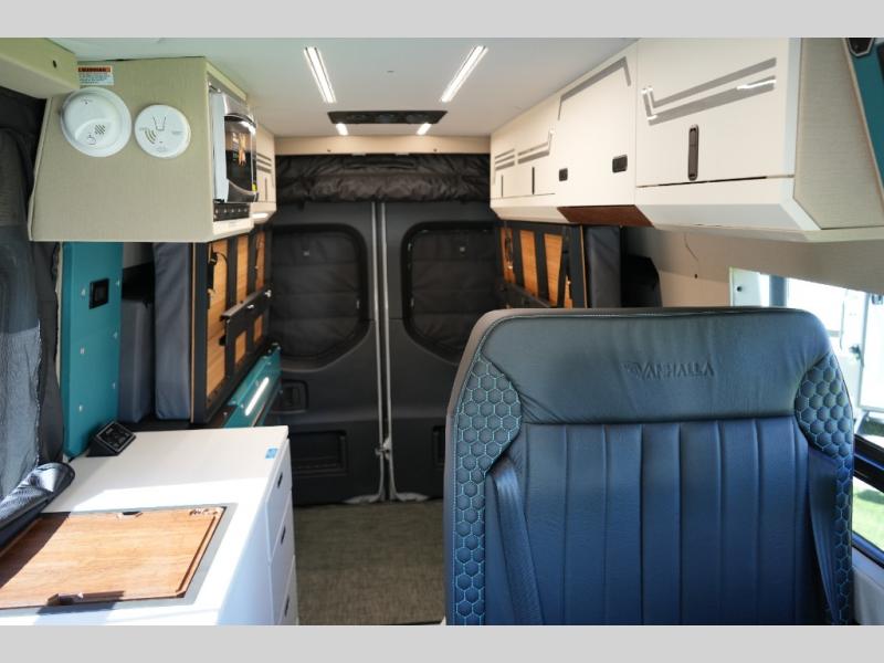 Seating: Front swivel seats integrate into the main cabin space; two-person Vanhalla rotating 90-degree sleeper seat for guests