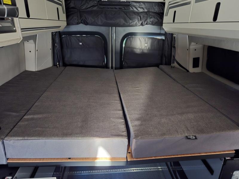 With any Remove Vans Class B diesel coach, you will enjoy connectivity, power, and comfort throughout! Each model sits on a trusted Mercedes-Benz sprinter all-wheel drive chassis with a 208HP twin-turbo, high power 4 cylinder diesel engine. The MoPoWa system includes a 190W solar panel, 16.8 kWh 100% usable battery storage with a built-in reserve, and a 51V Lithionics NEVERDIE power system to keep your adventurous lifestyle going. An upgraded Rixen hydronic air and water heating system also comes standard, along with an external shower, a 32 gallon fresh water tank and more! If you plan to work while you're on the road, the Starlink high-performance dish will provide high-speed mobile internet anywhere you roam. Each model also includes a high-quality, dual flooring system, a premium Italian composite, scratch-proof kitchen, a "Pennyworth" van control system, and Rolef custom bug screens to let fresh air in while keeping bugs out!