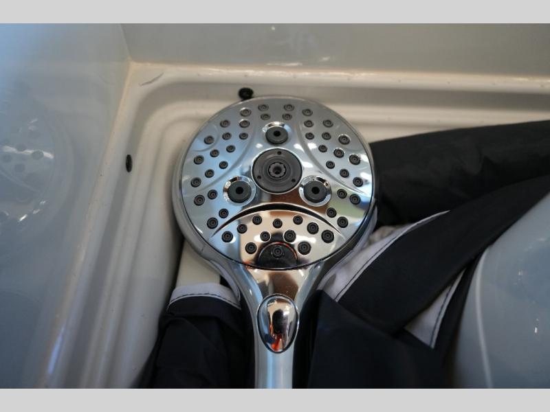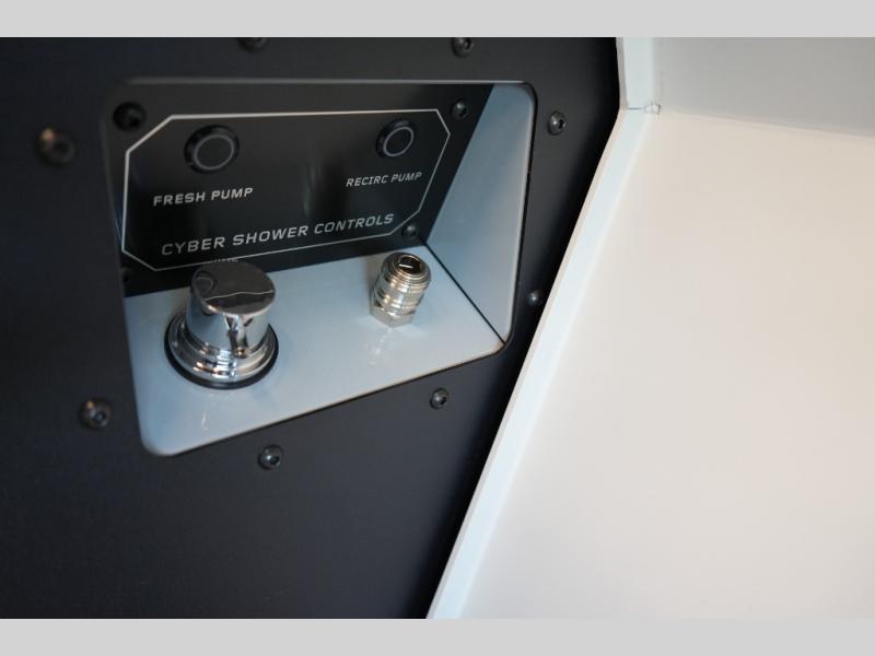 Cyber Shower – Industry-first system with non-slip tray, quick-connect shower head, removable drying curtain, and upper cabinet storage