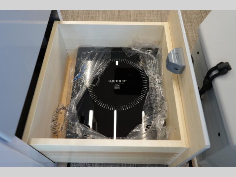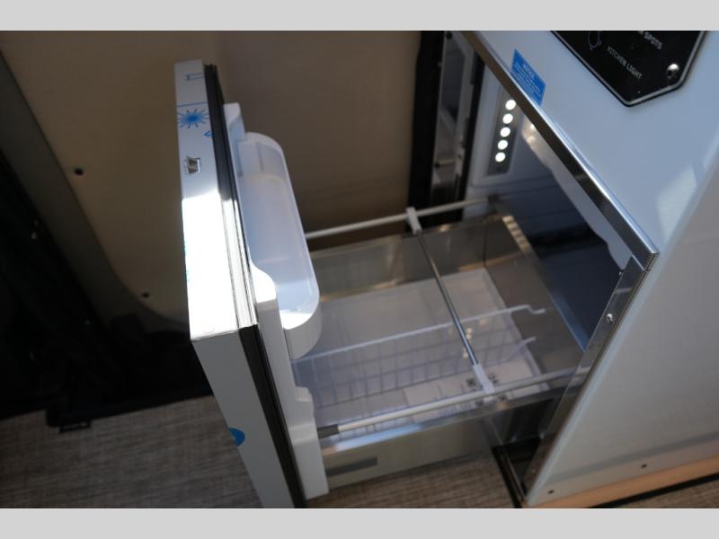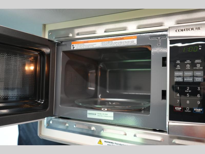 Kitchen Amenities – Portable 1300W induction cooktop, stainless-steel microwave, and 65L drawer fridge/freezer for easy meal prep