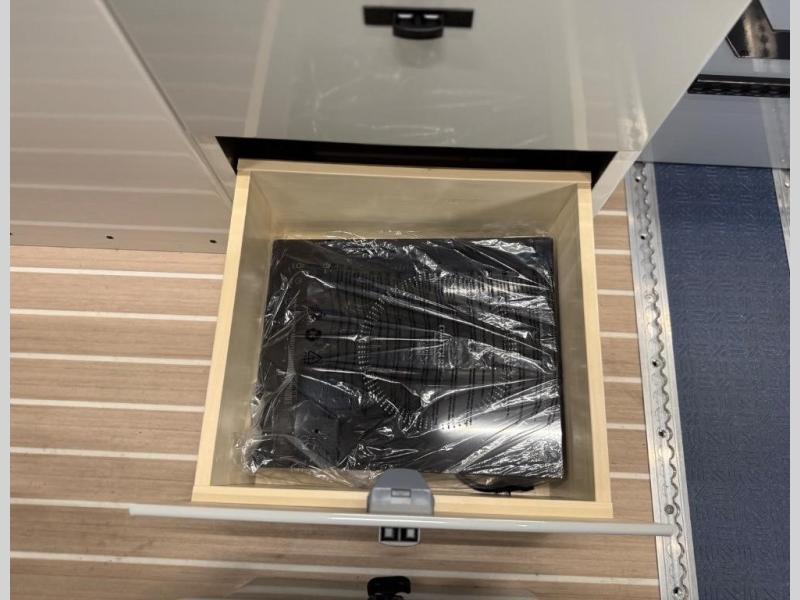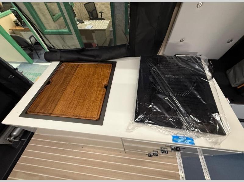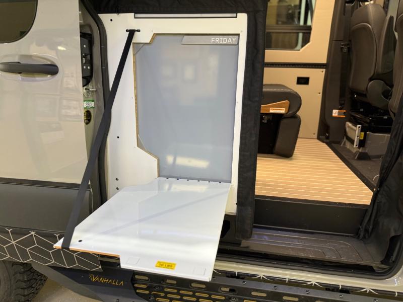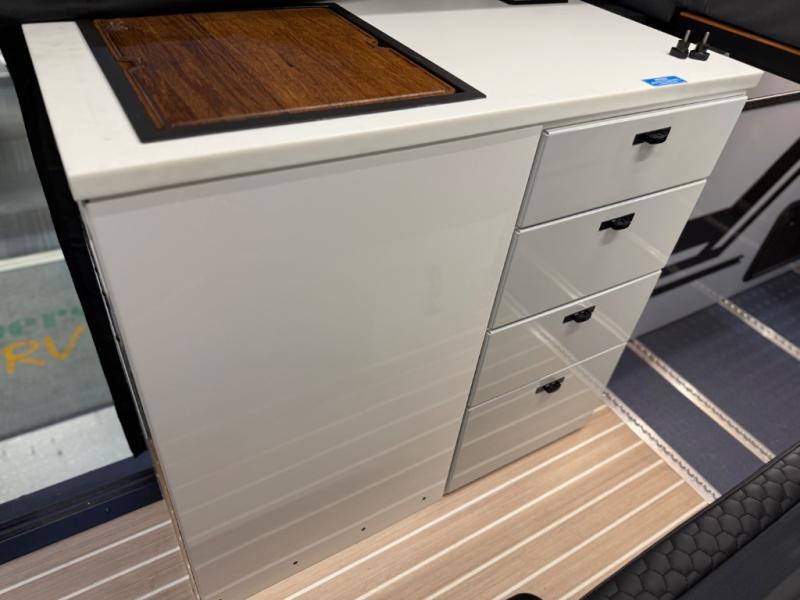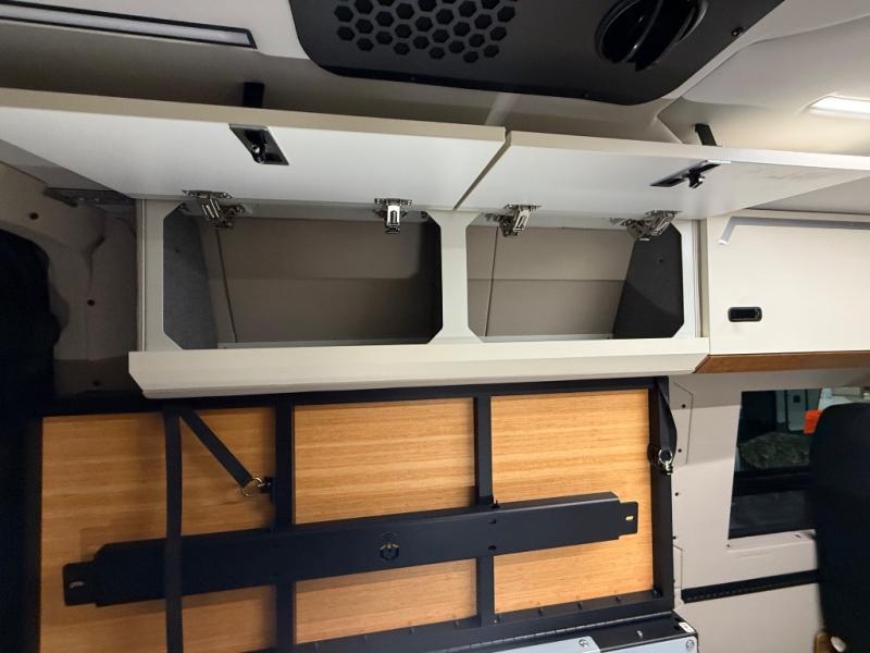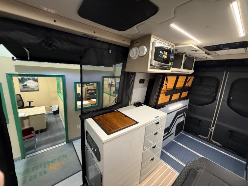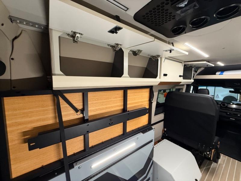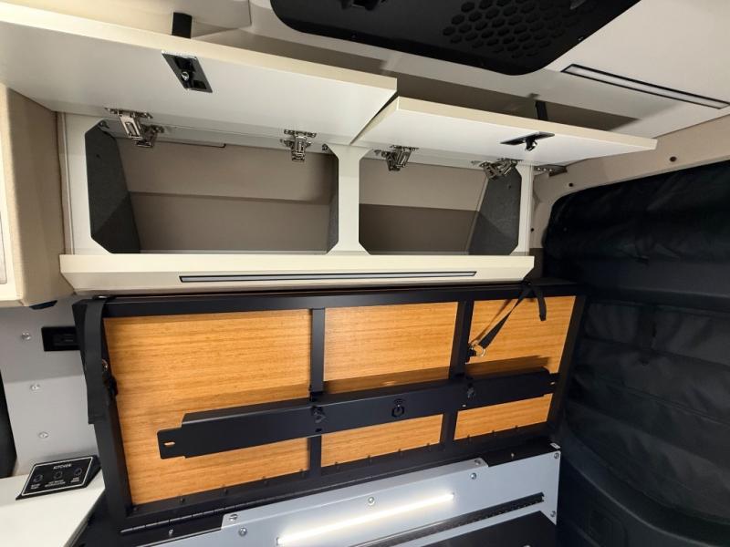 Adventure is waiting with this stylish and quality-built van! Once you stop for the day, you'll have everything you need to make dinner, including a portable 1300W induction cooktop and stainless-steel microwave. There is also a 65L stainless steel drawer refrigerator/freezer to store cold items and a drop-down bamboo table to set your drink on. In the garage, you'll find easy access panels and electrics, L-track and garage lighting, a water system, and a power control panel. You're sure to be blown away by the industry's first Cyber Shower! There is a non-slip tray and removable shower curtain that can be hung up to let dry, and the shower system is tucked away in an upper cabinet for convenience. Outside, you'll find a Vanhalla roof rack, a heavy-duty Opti-Leaf Springs, all-terrain tires, and more!