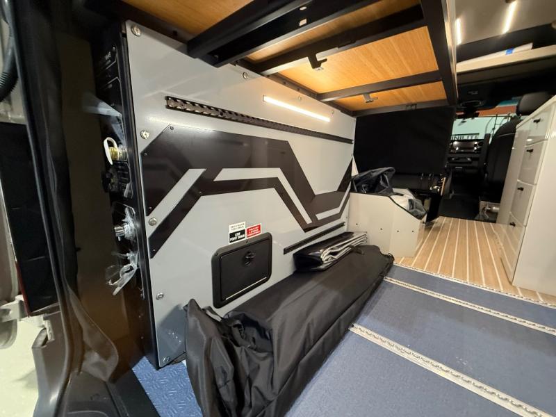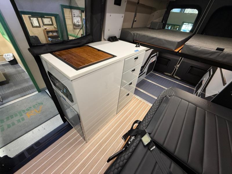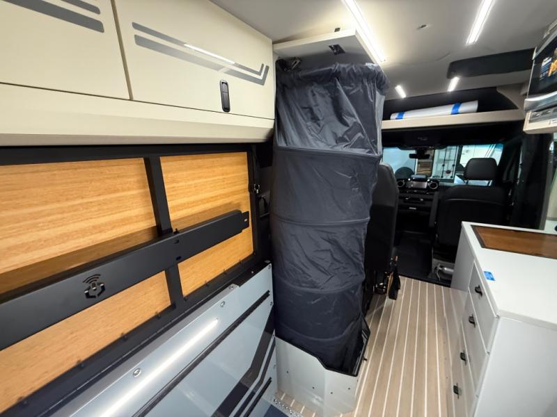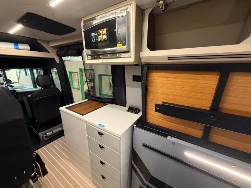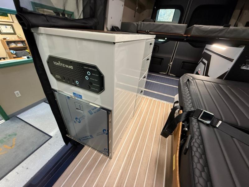 With any Remove Vans Class B diesel coach, you will enjoy connectivity, power, and comfort throughout! Each model sits on a trusted Mercedes-Benz sprinter all-wheel drive chassis with a 208HP twin-turbo, high power 4-cylinder diesel engine. The MoPoWa system includes a 200W solar panel, 3000W inverter, 100% usable battery storage with a built-in reserve, and a 51V Lithionics NEVERDIE power system to keep your adventurous lifestyle going. A Rixen hydronic air and water heating system also comes standard, along with an external shower, a 30 gallon fresh water tank and more! Each model also includes a high-quality, waterproof, dual flooring system, Killmat sound insulation and Solarcore thermal insulation, a "Pennyworth" van control system, and Vanhalla bug screens to let fresh air in while keeping bugs out!