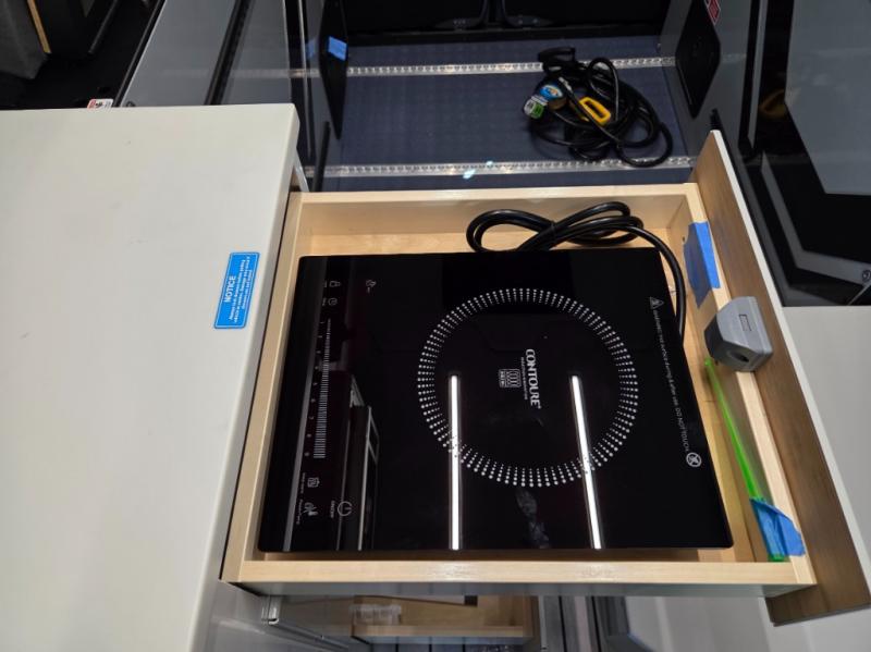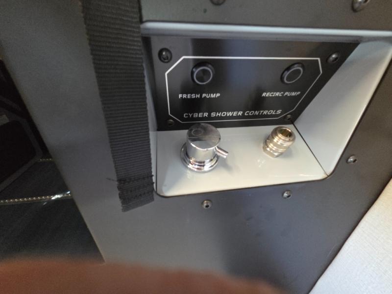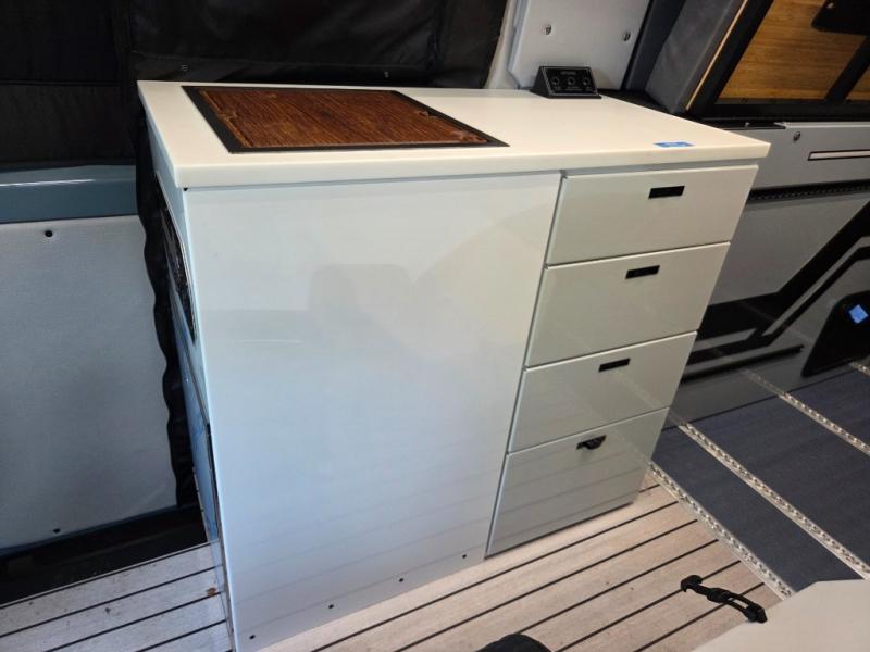 Adventure is waiting with this nimble and versatile van! Once you stop for the day, you'll have everything you need to make dinner, including a portable 1300W induction cooktop and stainless steel microwave. There is also a 65L stainless steel drawer refrigerator/freezer to store cold items and a drop-down bamboo table to set your drink on. In the garage, you'll find easy access panels and electrics, L-track and garage lighting, a water system, and a power control panel. You're sure to be blown away by the industry's first Cyber Shower, a recirculating shower! There is a non-slip tray and removable shower curtain that can be hung up to let dry, and the shower system is tucked away in an upper cabinet for convenience. Just active the recirculation system and you can enjoy extra long showers without using extra water. Outside, you'll find everything that comes with the Friday, along with a Terrawagon full hood and fender armor kit, Owl Vans expedition box, a Van Compass 4.3 suspension kit, and a 40" slim front LED lightbar to name just a few features!