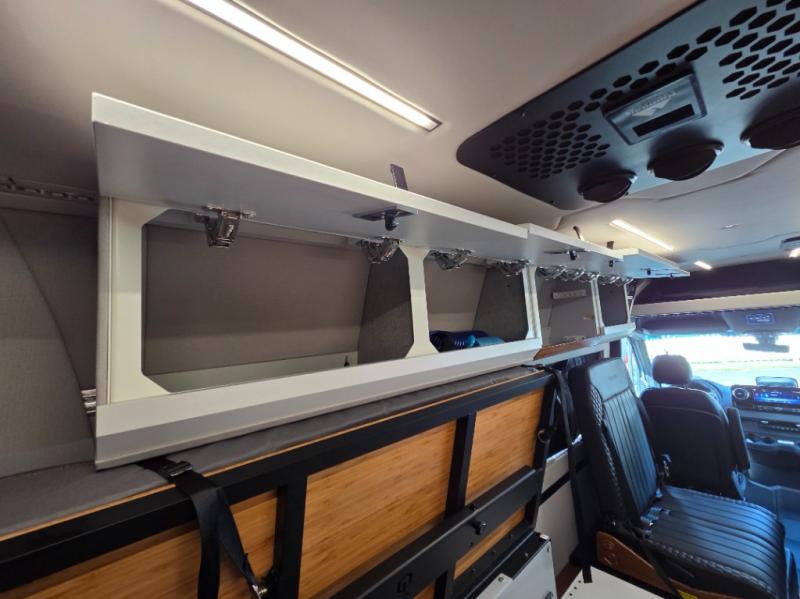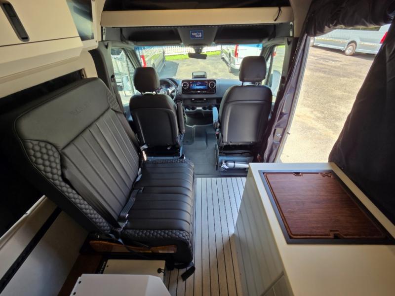 With any Remove Vans Class B diesel coach, you will enjoy connectivity, power, and comfort throughout! Each model sits on a trusted Mercedes-Benz sprinter all-wheel drive chassis with a 208HP twin-turbo, high power 4 cylinder diesel engine. The MoPoWa system includes a 190W solar panel, 16.8 kWh 100% usable battery storage with a built-in reserve, and a 51V Lithionics NEVERDIE power system to keep your adventurous lifestyle going. An upgraded Rixen hydronic air and water heating system also comes standard, along with an external shower, a 32 gallon fresh water tank and more! If you plan to work while you're on the road, the Starlink high-performance dish will provide high-speed mobile internet anywhere you roam. Each model also includes a high-quality, dual flooring system, a premium Italian composite, scratch-proof kitchen, a "Pennyworth" van control system, and Rolef custom bug screens to let fresh air in while keeping bugs out!