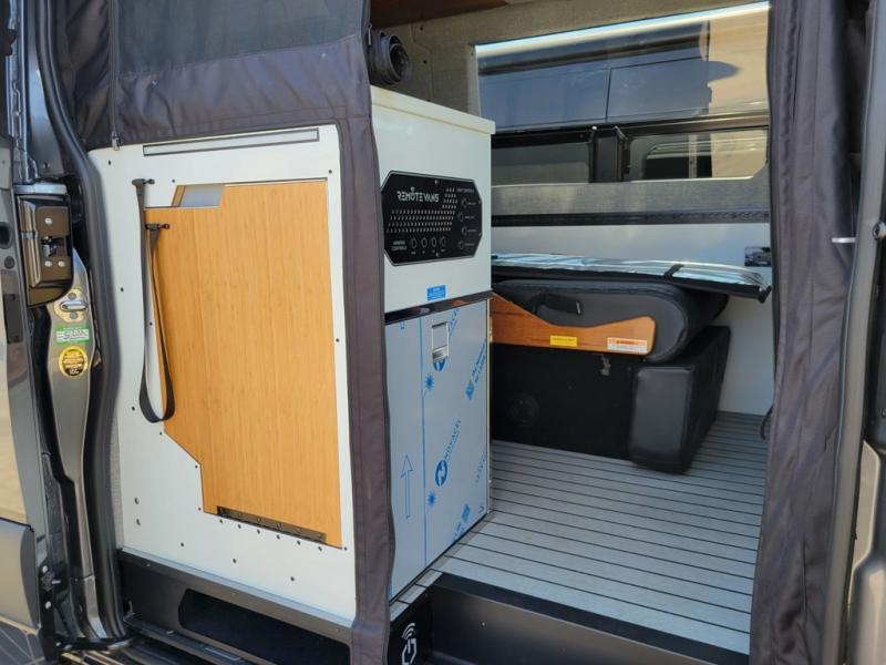 With any Remove Vans Class B diesel coach, you will enjoy connectivity, power, and comfort throughout! Each model sits on a trusted Mercedes-Benz sprinter all-wheel drive chassis with a 208HP twin-turbo, high power 4 cylinder diesel engine. The MoPoWa system includes a 190W solar panel, 16.8 kWh 100% usable battery storage with a built-in reserve, and a 51V Lithionics NEVERDIE power system to keep your adventurous lifestyle going. An upgraded Rixen hydronic air and water heating system also comes standard, along with an external shower, a 32 gallon fresh water tank and more! If you plan to work while you're on the road, the Starlink high-performance dish will provide high-speed mobile internet anywhere you roam. Each model also includes a high-quality, dual flooring system, a premium Italian composite, scratch-proof kitchen, a "Pennyworth" van control system, and Rolef custom bug screens to let fresh air in while keeping bugs out!