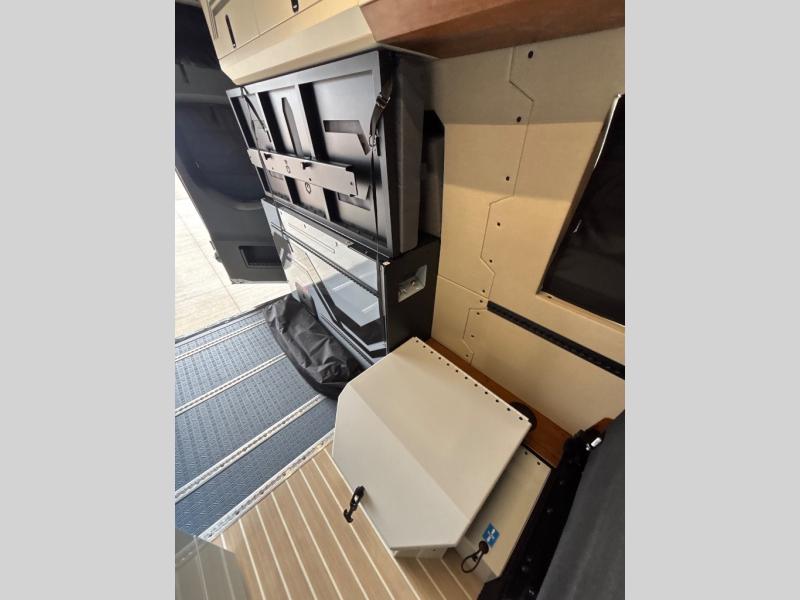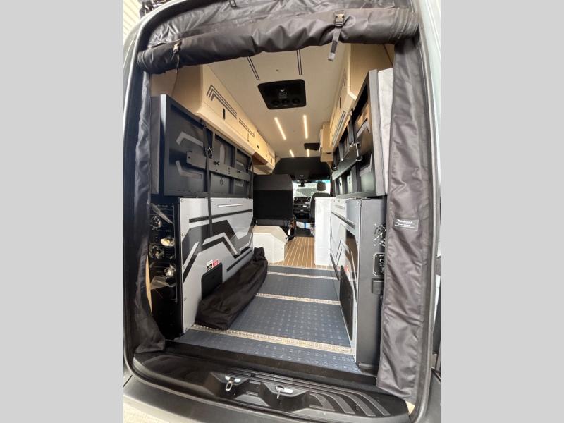 With any Remove Vans Class B diesel coach, you will enjoy connectivity, power, and comfort throughout! Each model sits on a trusted Mercedes-Benz sprinter all-wheel drive chassis with a 208HP twin-turbo, high power 4-cylinder diesel engine. The MoPoWa system includes a 200W solar panel, 3000W inverter, 100% usable battery storage with a built-in reserve, and a 51V Lithionics NEVERDIE power system to keep your adventurous lifestyle going. A Rixen hydronic air and water heating system also comes standard, along with an external shower, a 30 gallon fresh water tank and more! Each model also includes a high-quality, waterproof, dual flooring system, Killmat sound insulation and Solarcore thermal insulation, a "Pennyworth" van control system, and Vanhalla bug screens to let fresh air in while keeping bugs out!