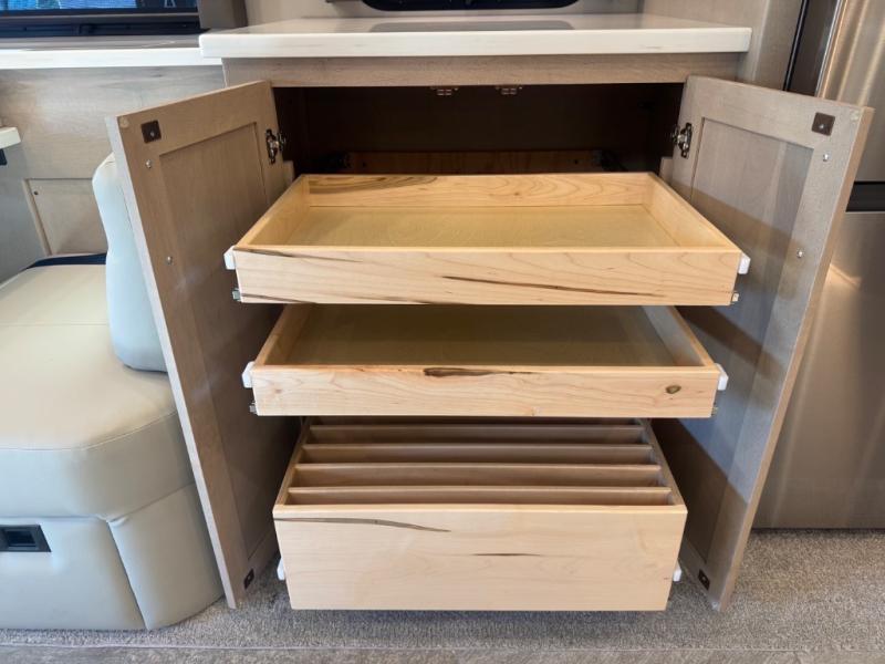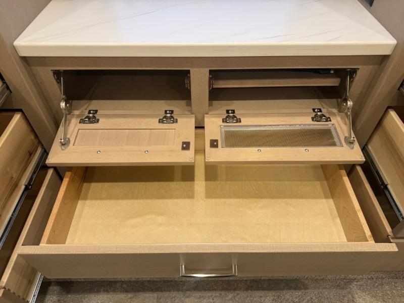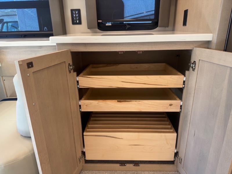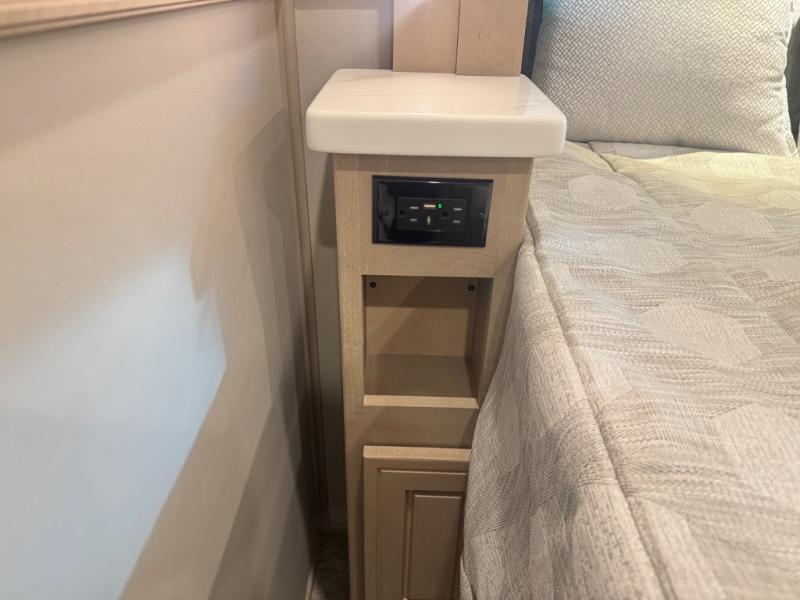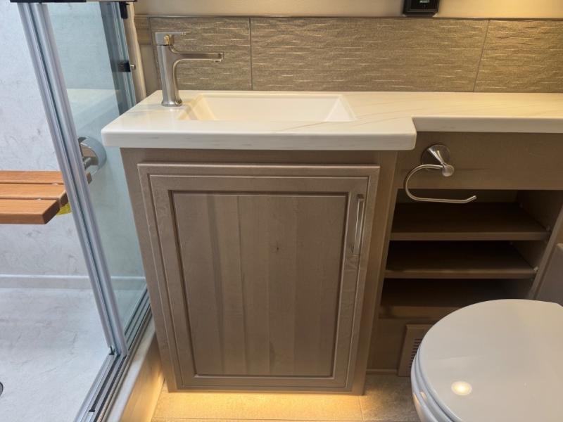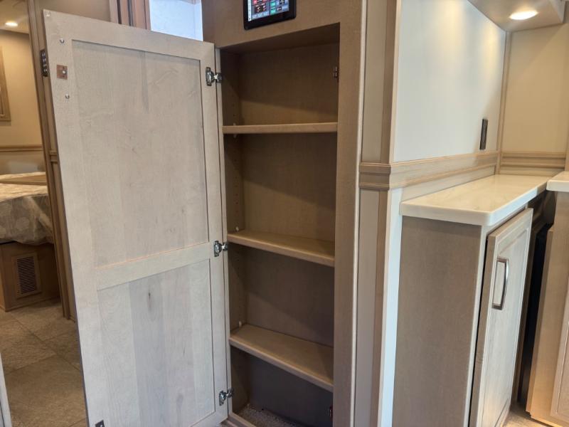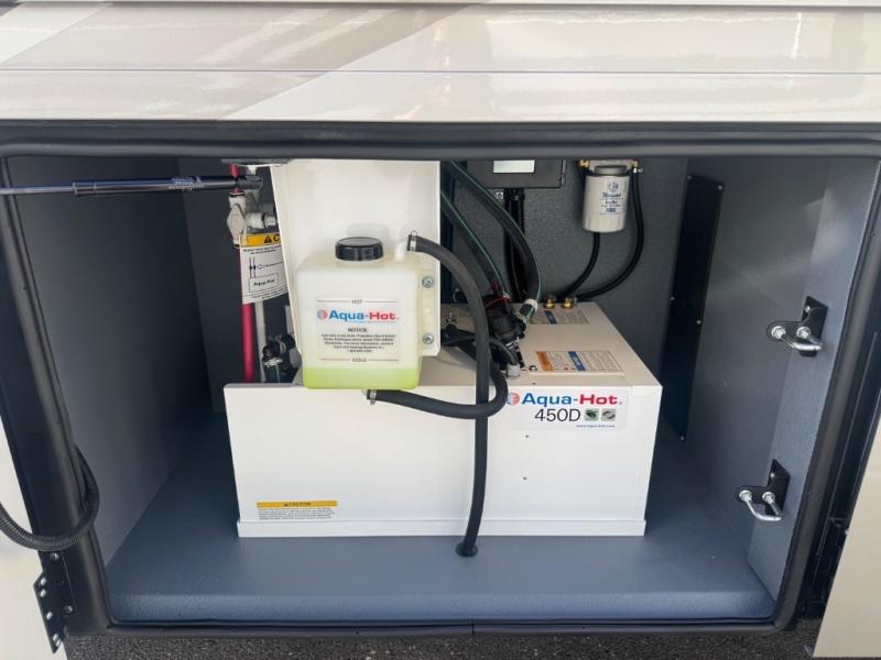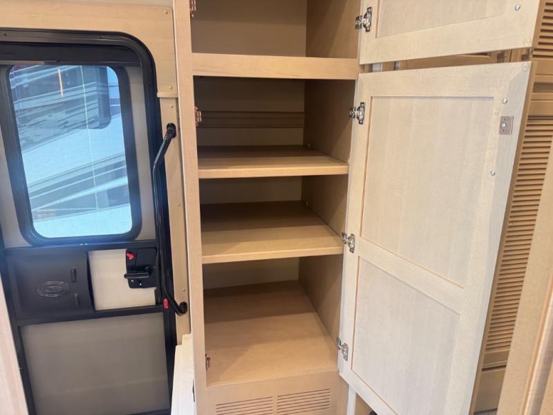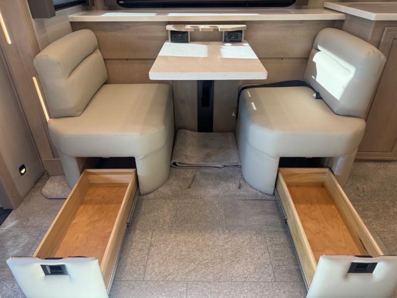 Renegade Explorer Super C diesel motorhome 38EMB highlights: Private Bedroom Ceiling Fan Opposing Slides Exterior 43" TV Induction Cooktop (3) 200W Solar Panels You will be completely ready to take on the next adventure with this Explorer Super C diesel motorhome! This coach delivers a comfortable, attractive, modern interior in which you can spend your time. There are loads of the latest appliances, like the 18-cubic foot French door refrigerator, stainless steel convection microwave, and two-burner induction cooktop. The full bathroom will be exceptionally helpful when getting ready with its shower skylight and LED vanity light, and the sofa sleeper is going to be a great place to sit down with a good book and cup of coffee. You will also appreciate having a booth dinette so that you can sit down together to enjoy a meal. Get a good night's rest each night on the 66" x 74" king bed slide across from another slide that houses a dresser base with closets on either side in the rear private bedroom! Extreme luxury, extreme purpose, and extreme durability is what you will find in each one of these Renegade Explorer Super C diesel motorhomes! They are more advanced than ever with a Freightliner Cascadia 116 chassis with an Allison TRV4000 transmission or Detroit DT12 12-speed transmission, a Detroit DD13 engine, and 525HP. The spacious interior is beautifully designed with tile floors, full maple, hardwood residential style cabinets, tile backsplashes, and ultra soft touch vinyl furniture upholstery. A multiplex system comes with Bluetooth app control so you can use it at the touch of a finger, and the Girard 2-Stage lateral arm rooftop awning with LED lights will protect you rain or shine and night or day. The exterior also has nine full body paint treatment colors to choose from and a four-point automatic hydraulic leveling system. Start driving in style today!