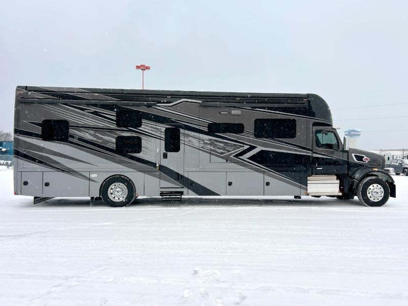 Extreme luxury, extreme purpose, and extreme durability is what you will find in each one of these Renegade Explorer Super C diesel motorhomes! They are more advanced than ever with a Peterbilt 567 chassis, a Cummins X15 engine, and 500HP. The spacious interior is beautifully designed with tile floors, full maple, hardwood residential style cabinets, tile backsplashes, and ultra soft touch vinyl furniture upholstery. A multiplex system comes with Bluetooth app control so you can use it at the touch of a finger, and the Girard 2-Stage lateral arm rooftop awning with LED lights will protect you rain or shine and night or day. The exterior also has nine full body paint treatment colors to choose from and a four-point automatic hydraulic leveling system. Start driving in style today!