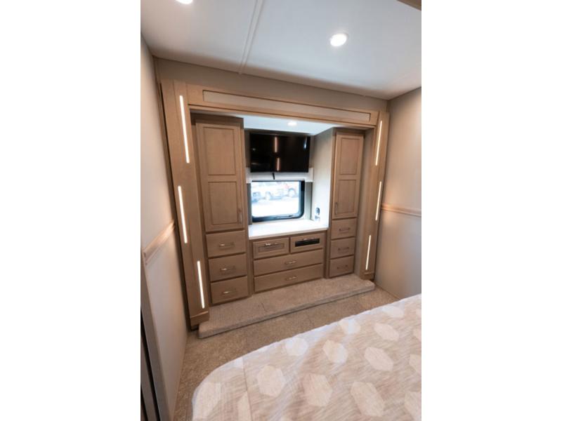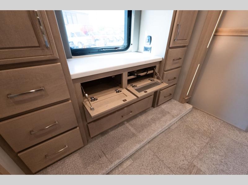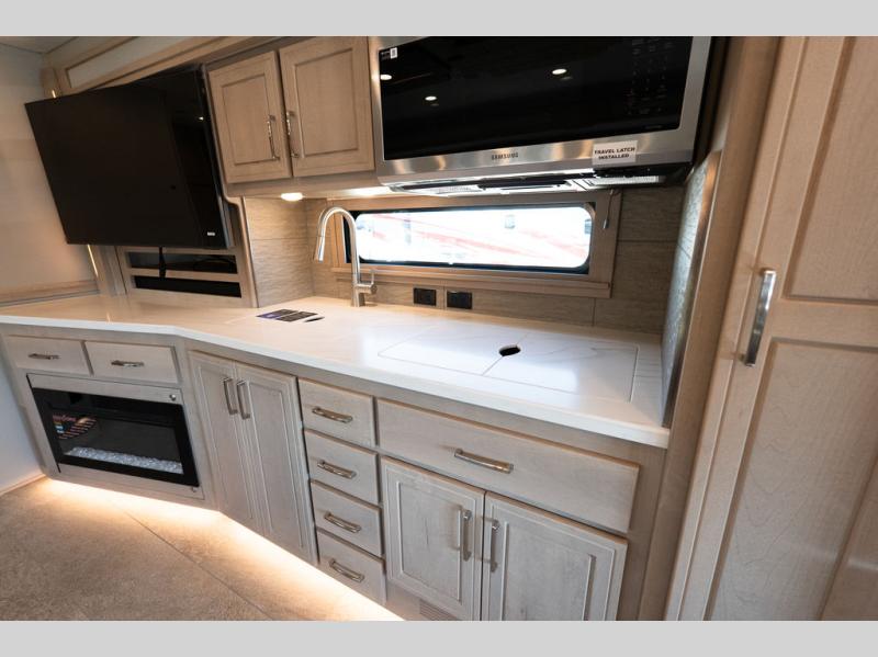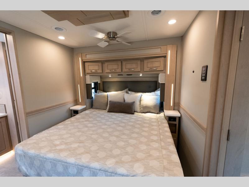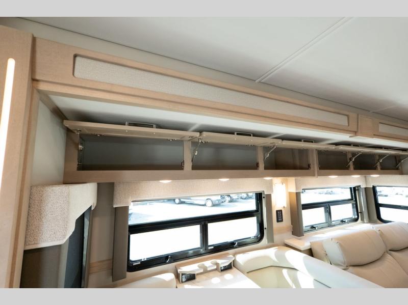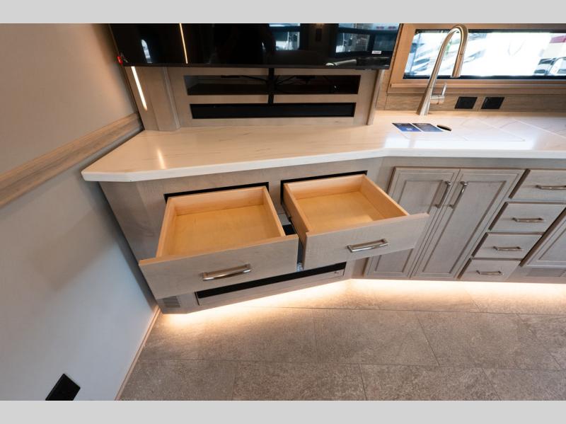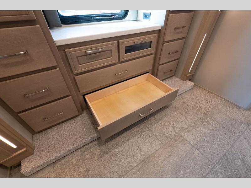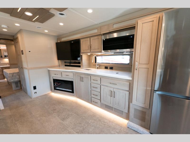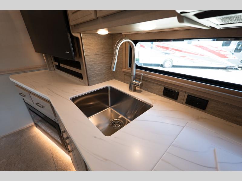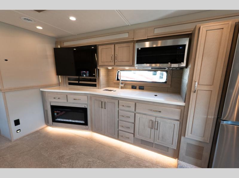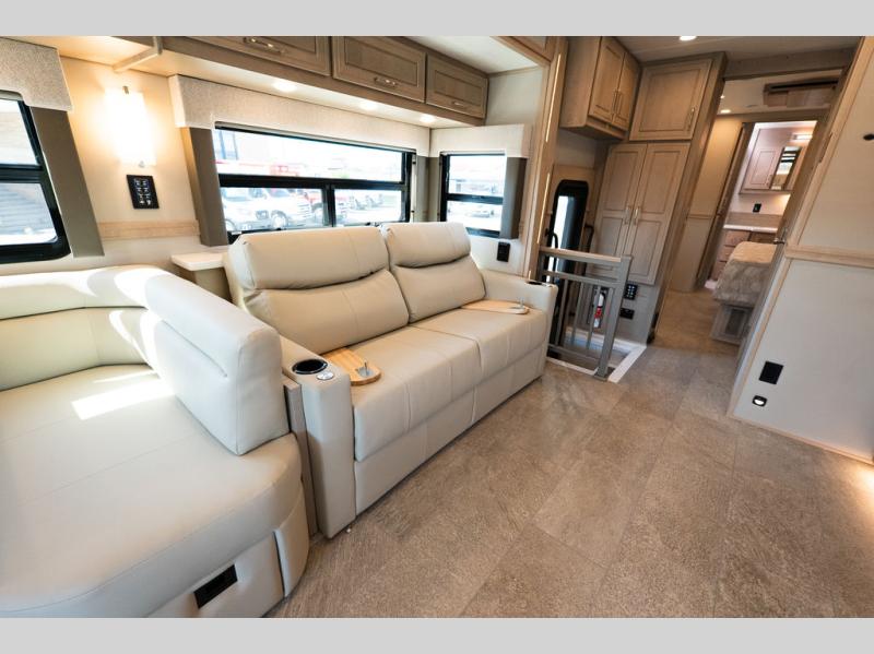 Extreme luxury, extreme purpose, and extreme durability is what you will find in each one of these Renegade Explorer Super C diesel motorhomes! They are more advanced than ever with a Freightliner Cascadia 116 chassis with an Allison TRV4000 transmission or Detroit DT12 12-speed transmission, a Detroit DD13 engine, and 525HP. The spacious interior is beautifully designed with tile floors, full maple, hardwood residential style cabinets, tile backsplashes, and ultra soft touch vinyl furniture upholstery. A multiplex system comes with Bluetooth app control so you can use it at the touch of a finger, and the Girard 2-Stage lateral arm rooftop awning with LED lights will protect you rain or shine and night or day. The exterior also has nine full body paint treatment colors to choose from and a four-point automatic hydraulic leveling system. Start driving in style today!