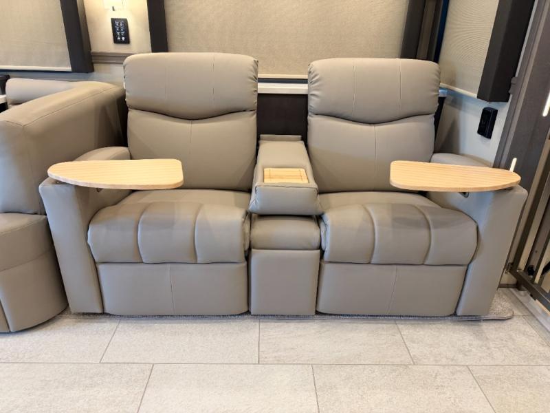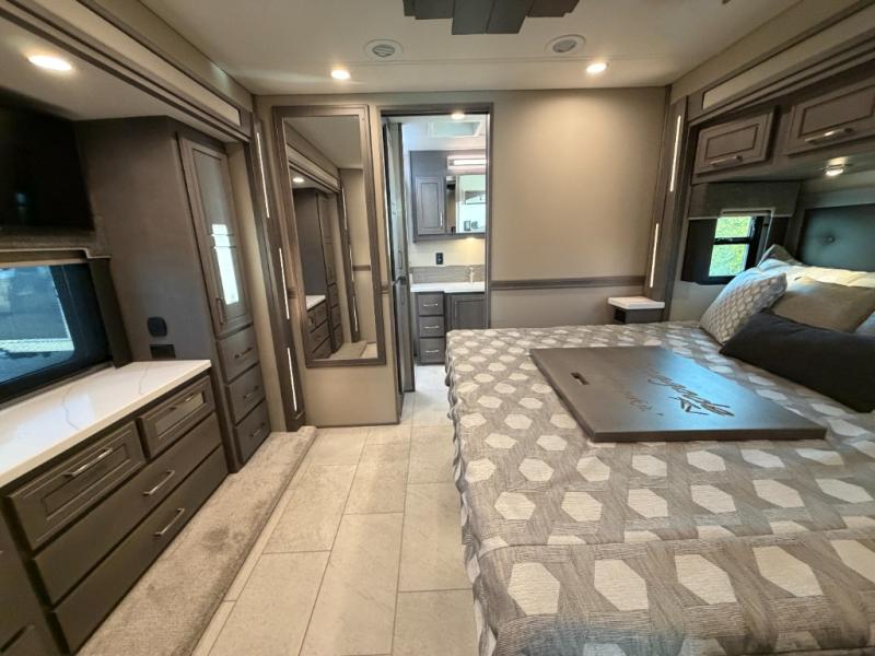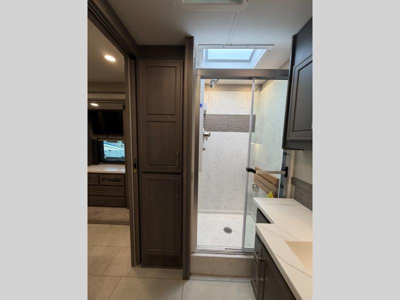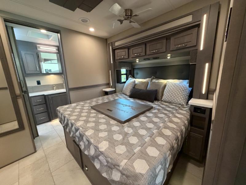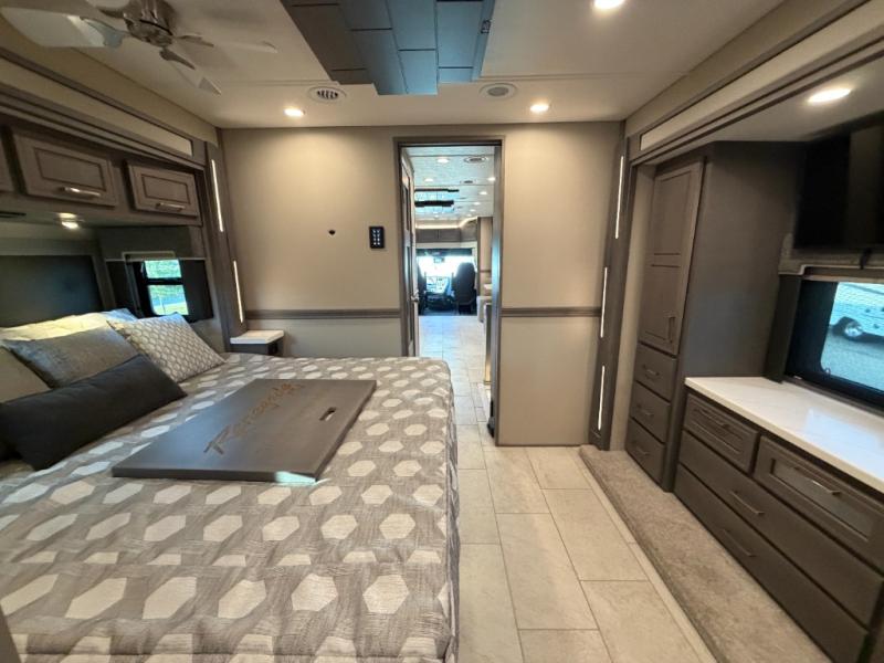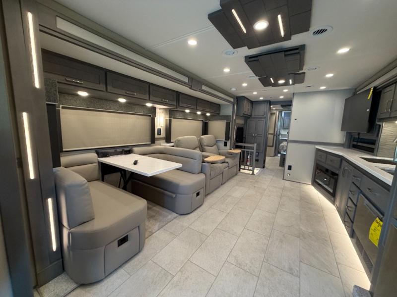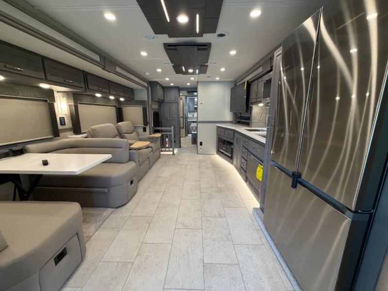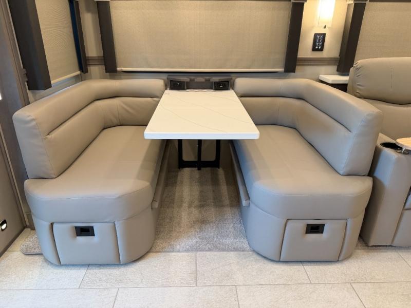 Extreme luxury, extreme purpose, and extreme durability is what you will find in each one of these Renegade Explorer Super C diesel motorhomes! They are more advanced than ever with a Freightliner Cascadia 116 chassis with an Allison TRV4000 transmission or Detroit DT12 12-speed transmission, a Detroit DD13 engine, and 525HP. The spacious interior is beautifully designed with tile floors, full maple, hardwood residential style cabinets, tile backsplashes, and ultra soft touch vinyl furniture upholstery. A multiplex system comes with Bluetooth app control so you can use it at the touch of a finger, and the Girard 2-Stage lateral arm rooftop awning with LED lights will protect you rain or shine and night or day. The exterior also has nine full body paint treatment colors to choose from and a four-point automatic hydraulic leveling system. Start driving in style today!