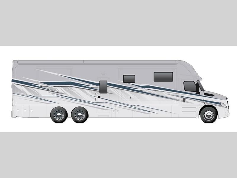 A legend of luxury is what you will find in each one of these Renegade XL Super C diesel motorhomes! Their ultra sleek interiors have been thoughtfully designed with simplified luxury and many unparalleled features like Cambria Quartz countertops throughout and Mastrotto Italian hide leather furniture. The 4-point automatic hydraulic leveling system makes life easier, the multiplex system with color touch panel and Bluetooth app control lets you adjust things with the touch of a finger, and the Aqua-Hot 600D hydronic water and zone heating system provides hot water where ever you go. With nine Colorway paint options and three interior decor options, you can be sure to have the one that fits your style. You will appreciate the electrical systems with dual 3,000W True Sine wave inverters, (4) high-capacity Lithium batteries, and (6) 200W solar panels for off-grid capabilities. Head outdoors to find dual roof-mounted Girard awnings, and steel storage compartments to keep your gear secure. The Renegade XL sits on a Freightliner Cascadia 126 or Western Star 57X tandem axle chassis; see dealer for more details!