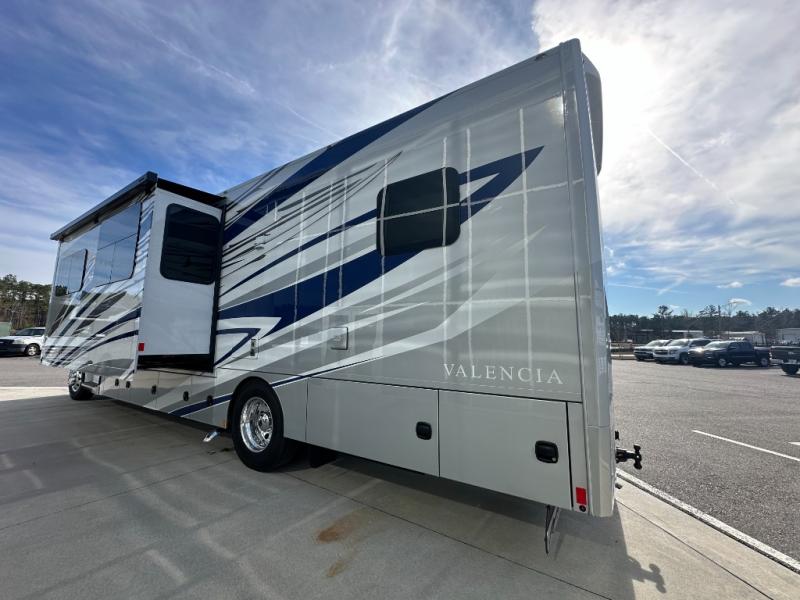 Each one of these Renegade Valencia Super C diesel motorhomes offer ultimate comfort and durable construction! They have a Freightliner S2RV chassis for a refined ride with responsive handling, as well as a powerful Cummins ISB 360 HP engine with a 3,000MH Alison transmission and a single 100 gallon fuel tank to get you farther. A few of the beautifully designed interior features are the solid hardwood cabinets, the polished solid surface countertops, and the stainless steel appliances. Travel in comfort and style with the modern furniture and abundant storage areas like the exterior steel storage compartments with carpeted lining. You will also appreciate the four point automatic hydraulic leveling system and the multiplex system with Bluetooth app control. With six colorway paint options and three interior décor options, you can be sure to find the right one for you!