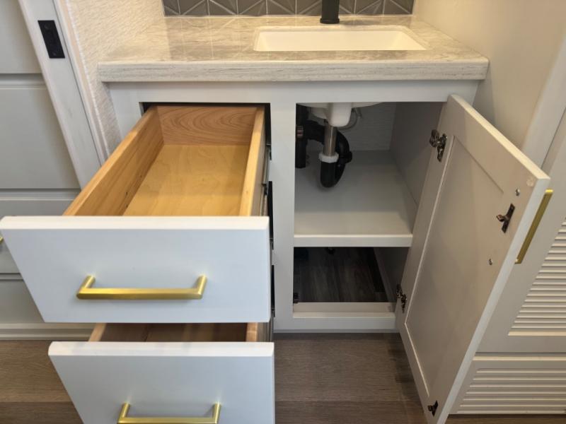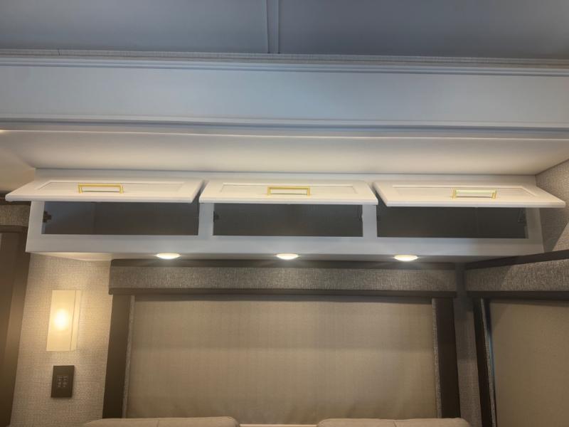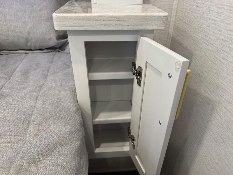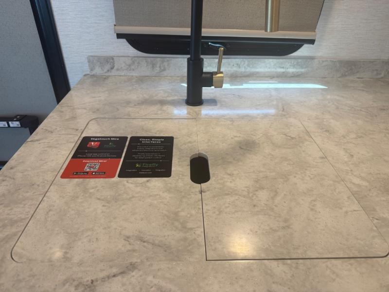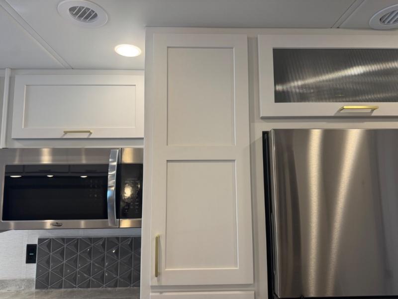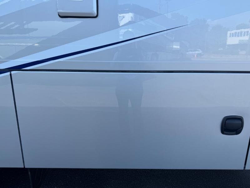 You will experience comfort and luxury with this motorhome! The rear private bedroom has a 66" x 74" mini-king bed across from a 32" Smart LED TV with a dresser below and closets on either side, plus it leads into the separated bathroom. The bathroom has a radius shower with a skylight above for natural lighting as you get ready and a closet that pre-wired and plumbed for an optional washer and dryer for clean clothes throughout your entire trip. The sofa sleeper and booth dinette offer a comfortable place to relax and convert to sleeping space. Grab a cold beverage from the 18 cu. ft. residential stainless steel refrigerator then head to the exterior entertainment center to watch the big game on the 32" Smart LED TV with a sound bar on a swivel and USB charging!