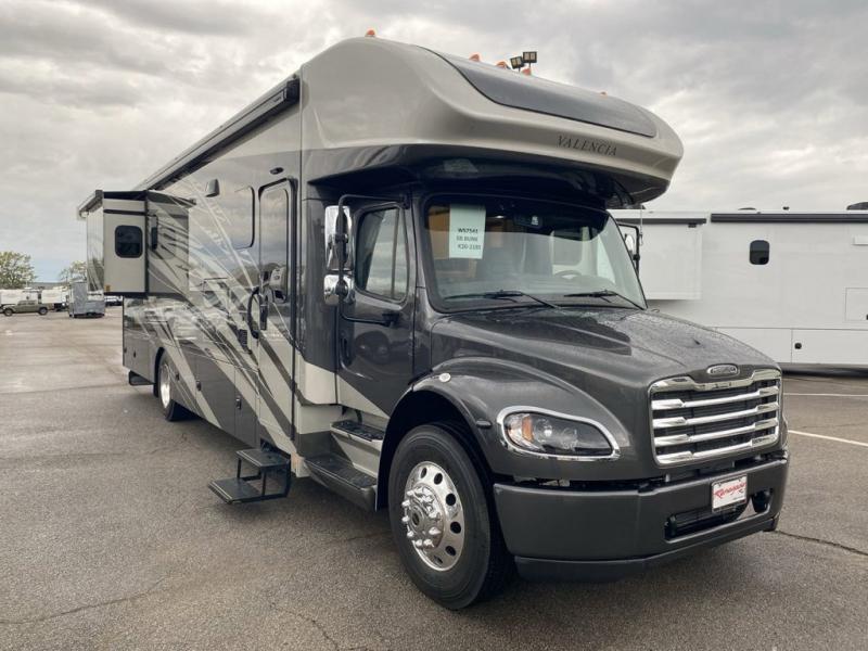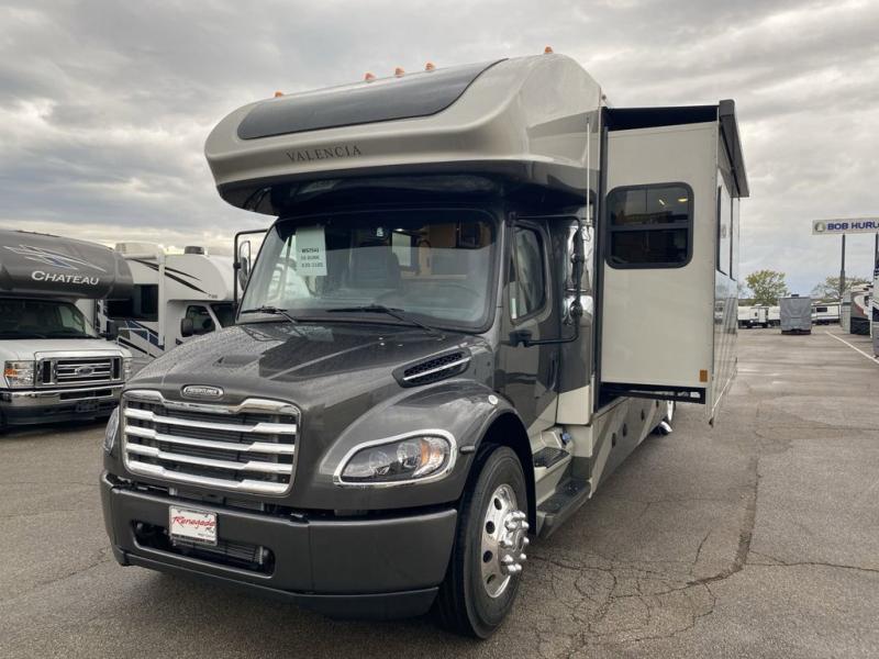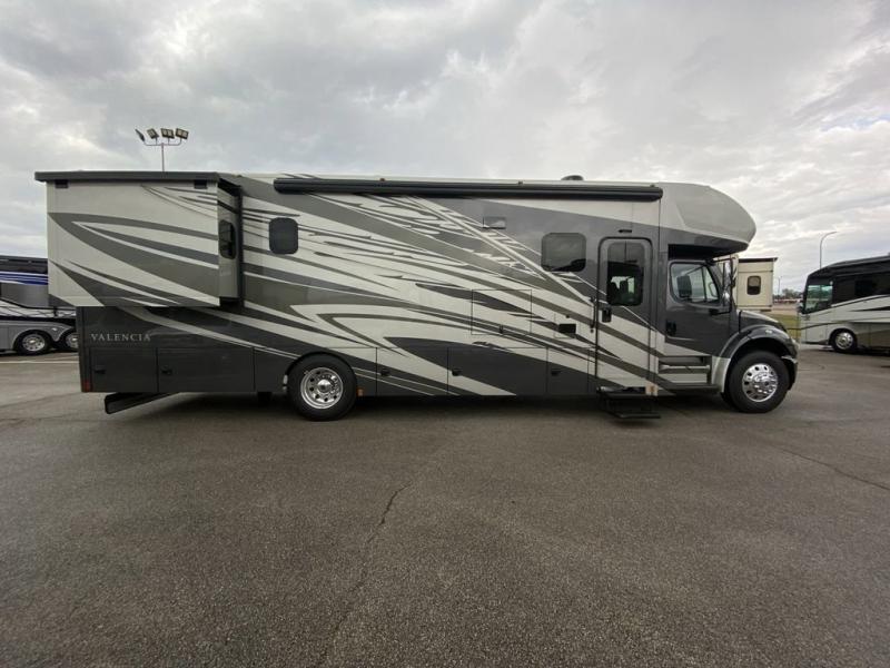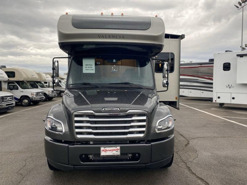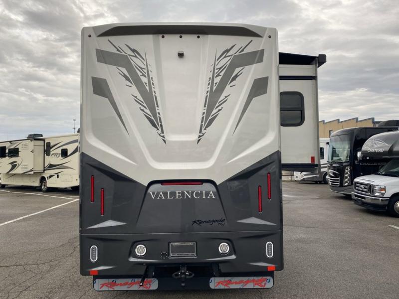 Each one of these Renegade Valencia Super C diesel motorhomes offer ultimate comfort and durable construction! They have a Freightliner S2RV chassis for a refined ride with responsive handling, as well as a powerful Cummins ISB 360 HP engine with a 3,000MH Alison transmission and a single 100 gallon fuel tank to get you farther. A few of the beautifully designed interior features are the solid hardwood cabinets, the polished solid surface countertops, and the stainless steel appliances. Travel in comfort and style with the modern furniture and abundant storage areas like the exterior steel storage compartments with carpeted lining. You will also appreciate the four point automatic hydraulic leveling system and the multiplex system with Bluetooth app control. With eight colorway paint options and three interior décor options, you can be sure to find the right one for you!