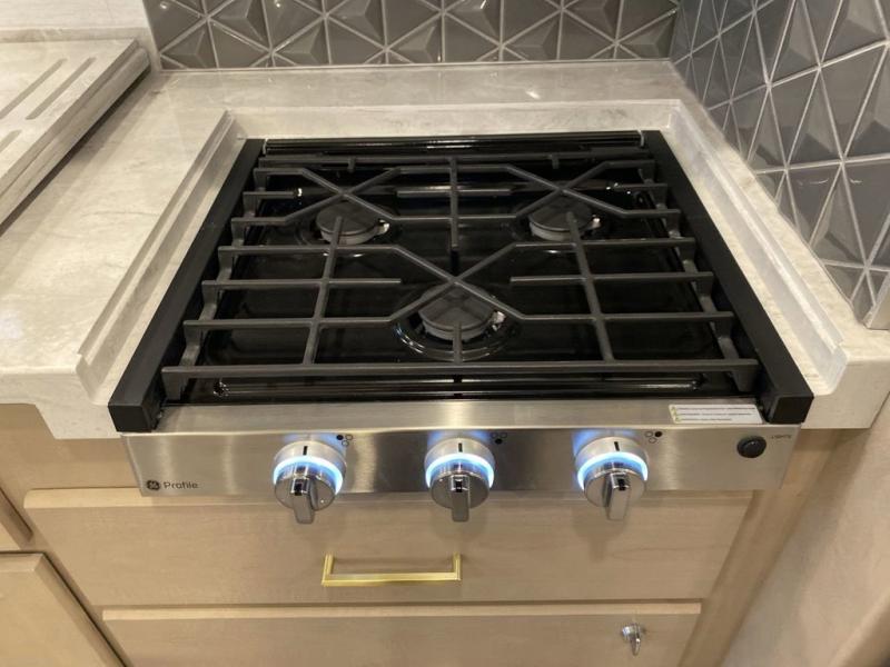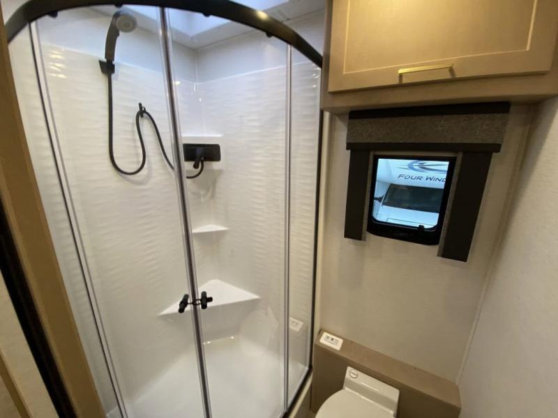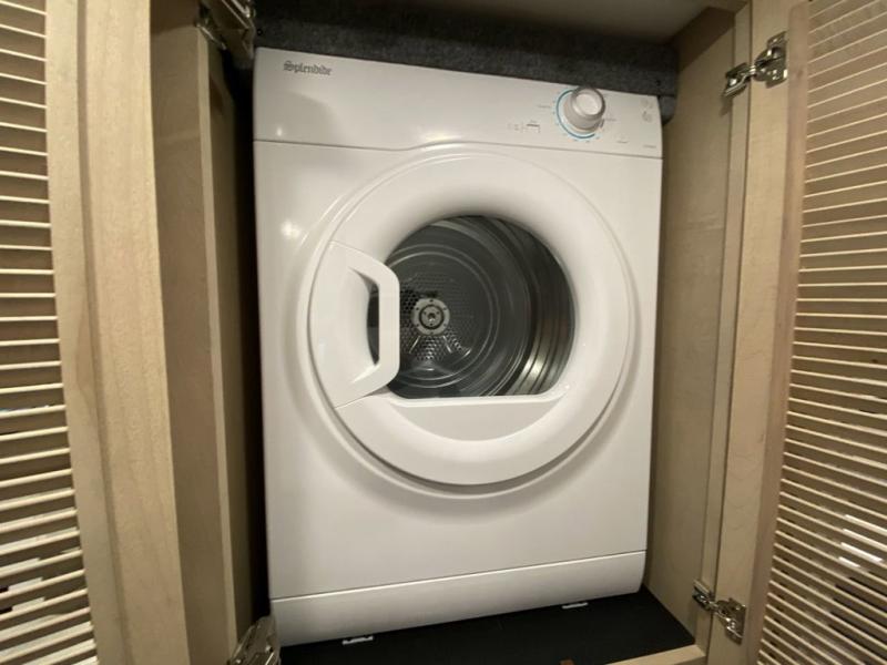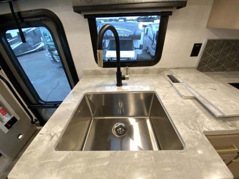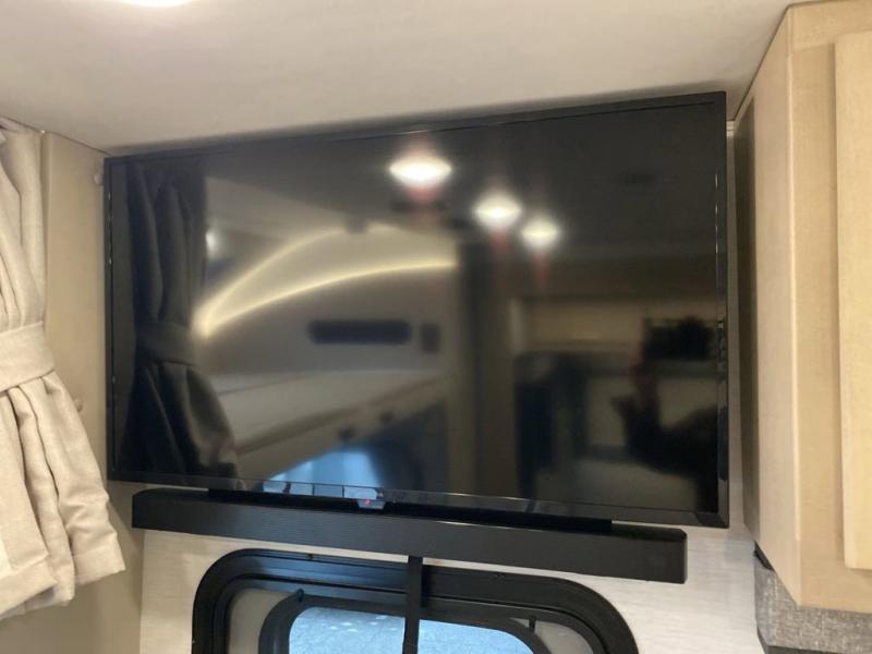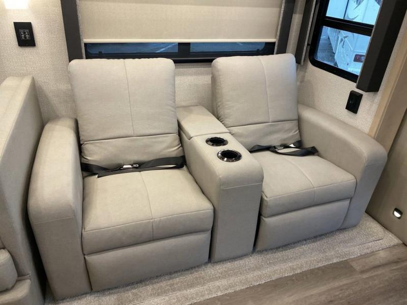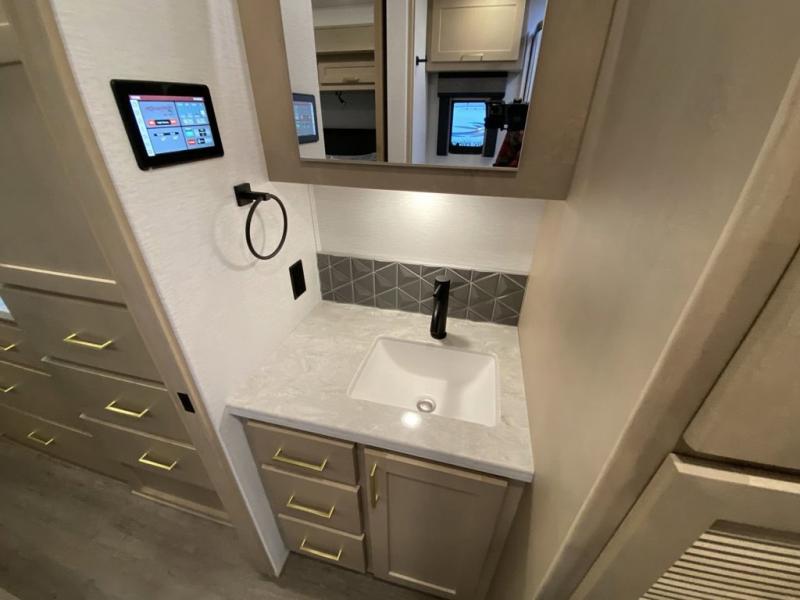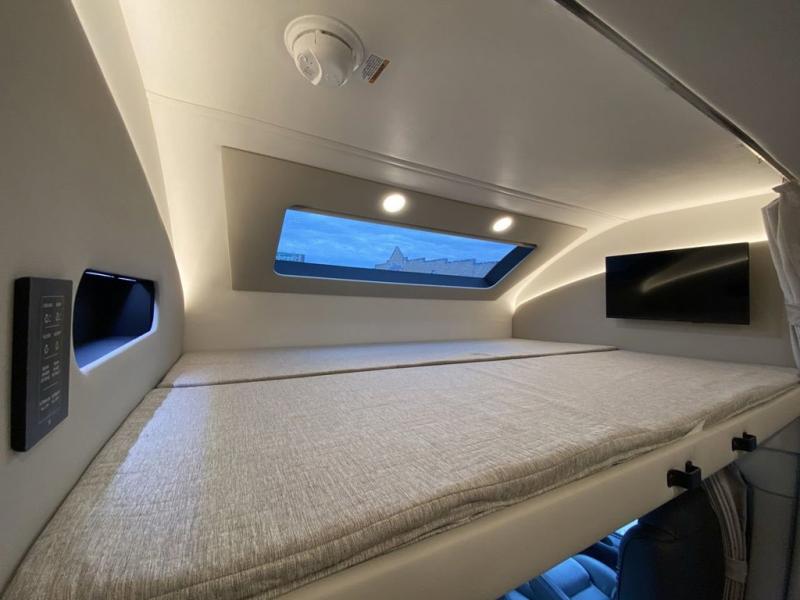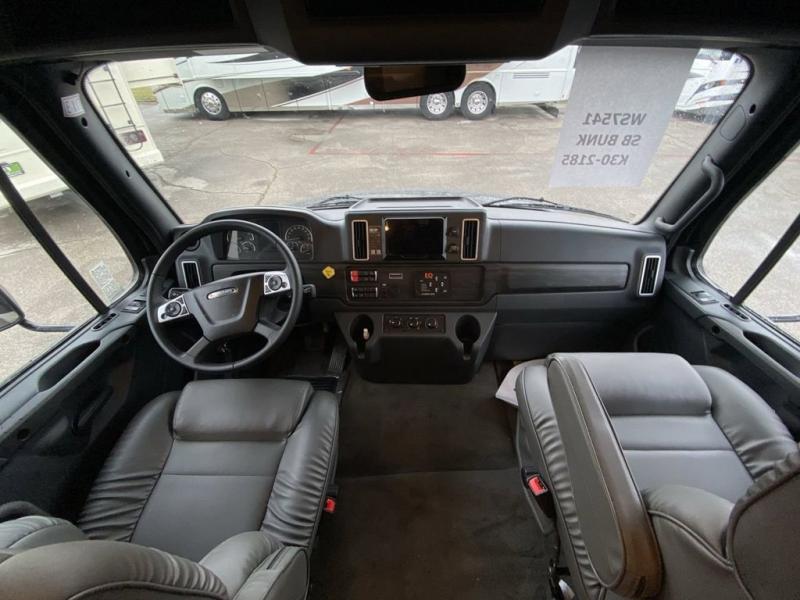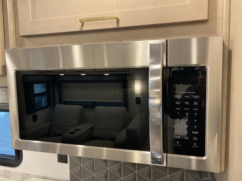 You will experience comfort and luxury with this motorhome! The rear private bedroom has a 66" x 74" mini-king bed across from a 32" Smart LED TV with a dresser below and closets on either side, plus it leads into the separated bathroom. The bathroom has a radius shower with a skylight above for natural lighting as you get ready and a closet that pre-wired and plumbed for an optional washer and dryer for clean clothes throughout your entire trip. The sofa sleeper and booth dinette offer a comfortable place to relax and convert to sleeping space. Grab a cold beverage from the 18 cu. ft. residential stainless steel refrigerator then head to the exterior entertainment center to watch the big game on the 32" Smart LED TV with a sound bar on a swivel and USB charging!